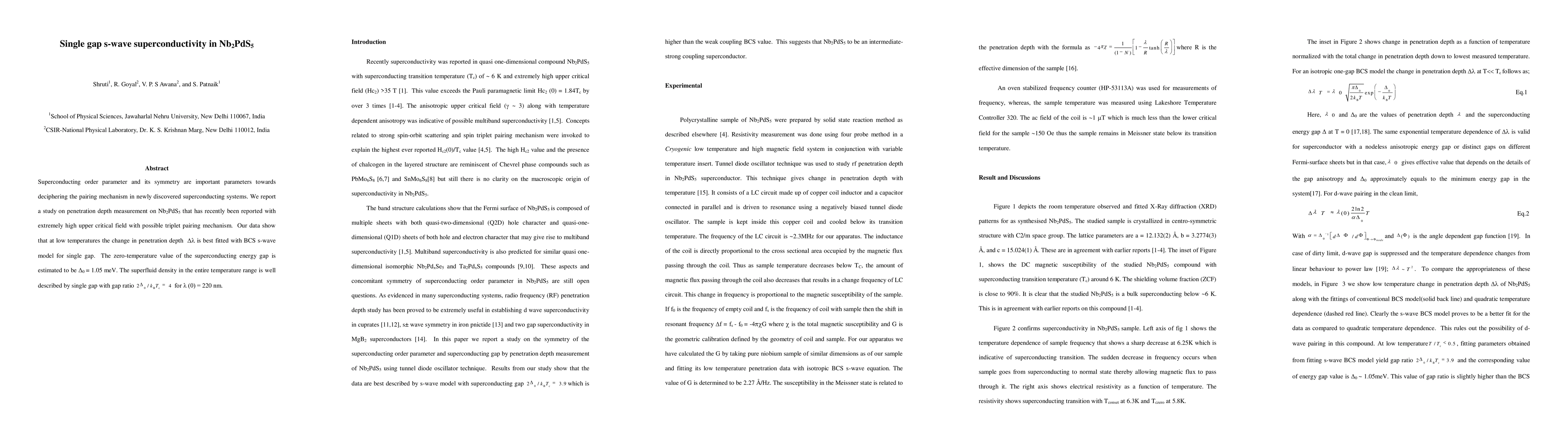 Superconducting order parameter and its symmetry are important parameters towards deciphering the pairing mechanism in newly discovered superconducting systems. We report a study on penetration depth measurement on Nb2PdS5 that has recently been reported with extremely high upper critical field with possible triplet pairing mechanism. Our data show that at low temperatures the change in penetration depth is best fitted with BCS s-wave model for single gap. The zero-temperature value of the superconducting energy gap is estimated to be {\Delta}0 = 1.05 meV. The superfluid density in the entire temperature range is well described by single gap for {\lambda} (0) = 220 nm.