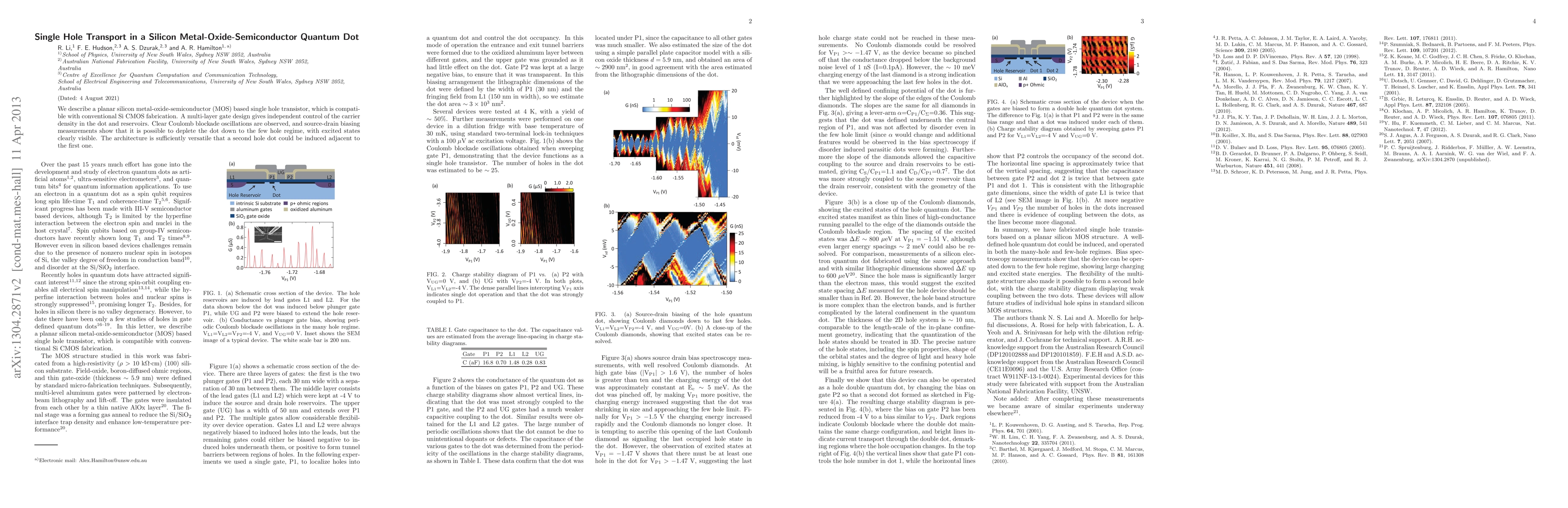 This paper presents a silicon MOS-based single hole transistor compatible with conventional Si CMOS fabrication, demonstrating independent control of carrier density and clear Coulomb blockade oscillations, and showing the potential for inducing a second hole dot adjacent to the first.
