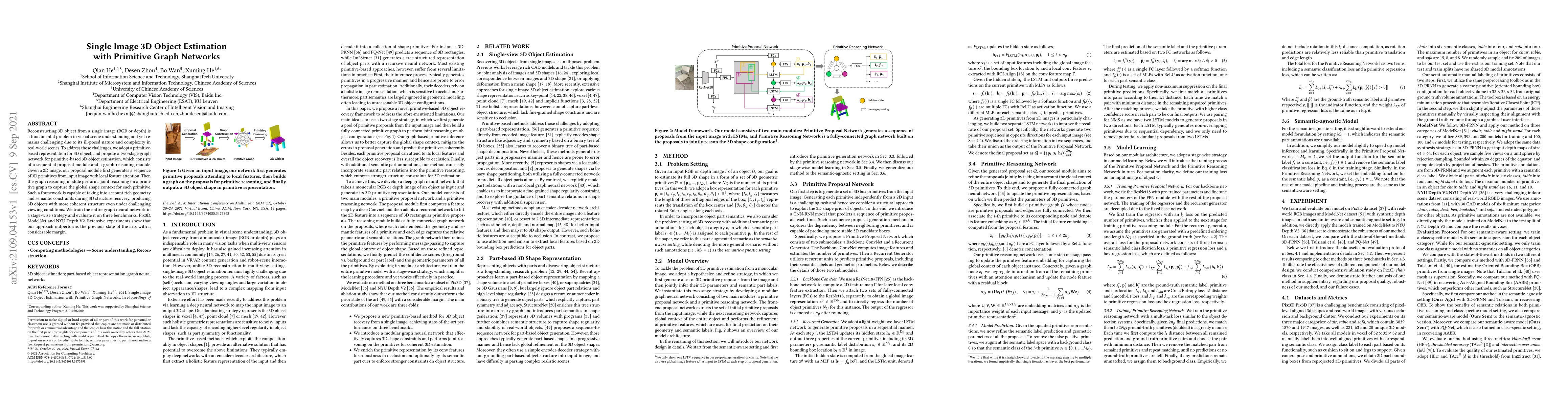 This paper proposes a new method for 3D object estimation from single images using primitive graphs, achieving better performance than previous state-of-the-art methods.
