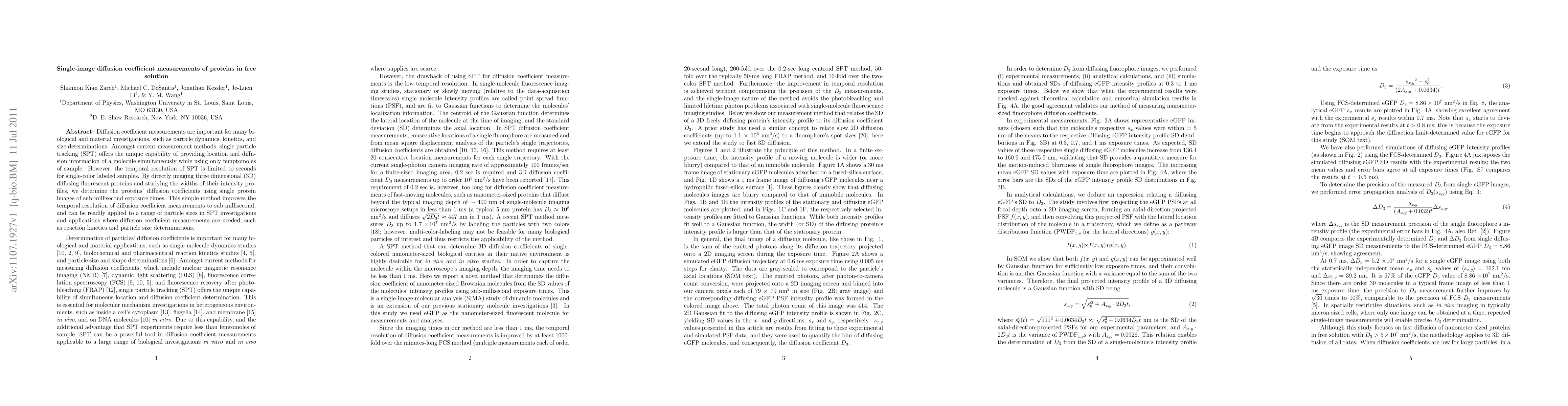 Scientists developed a new method to measure proteins' diffusion coefficients with sub-millisecond temporal resolution, improving its accuracy for applications like reaction kinetics and particle size determinations.