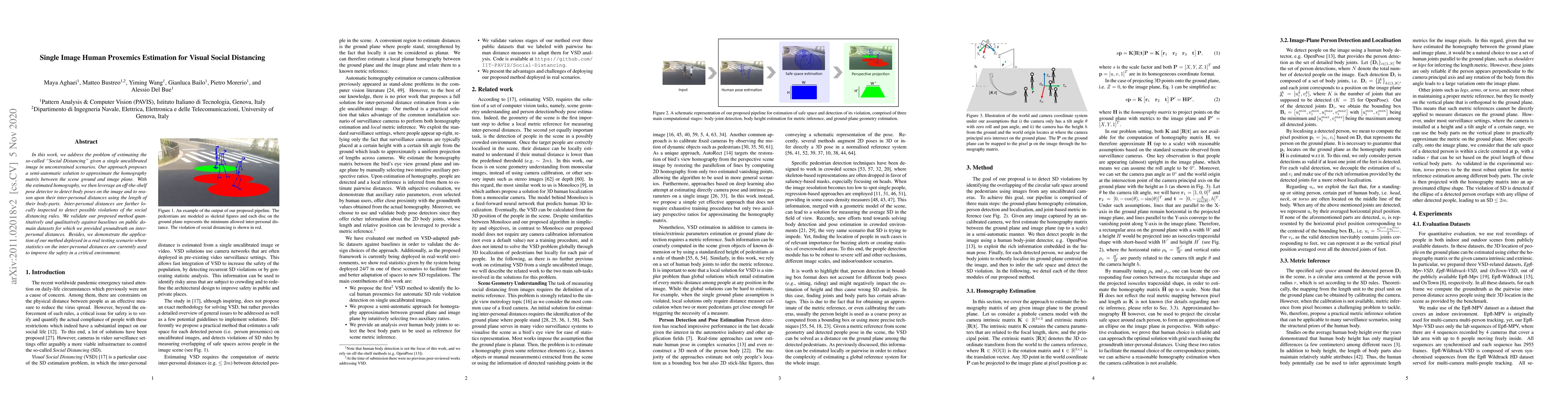 This paper proposes a semi-automatic method to estimate social distancing in single uncalibrated images by approximating the homography matrix and leveraging pose detection to measure inter-personal distances. The method is validated against baselines and demonstrated in a real-world scenario to enhance safety.