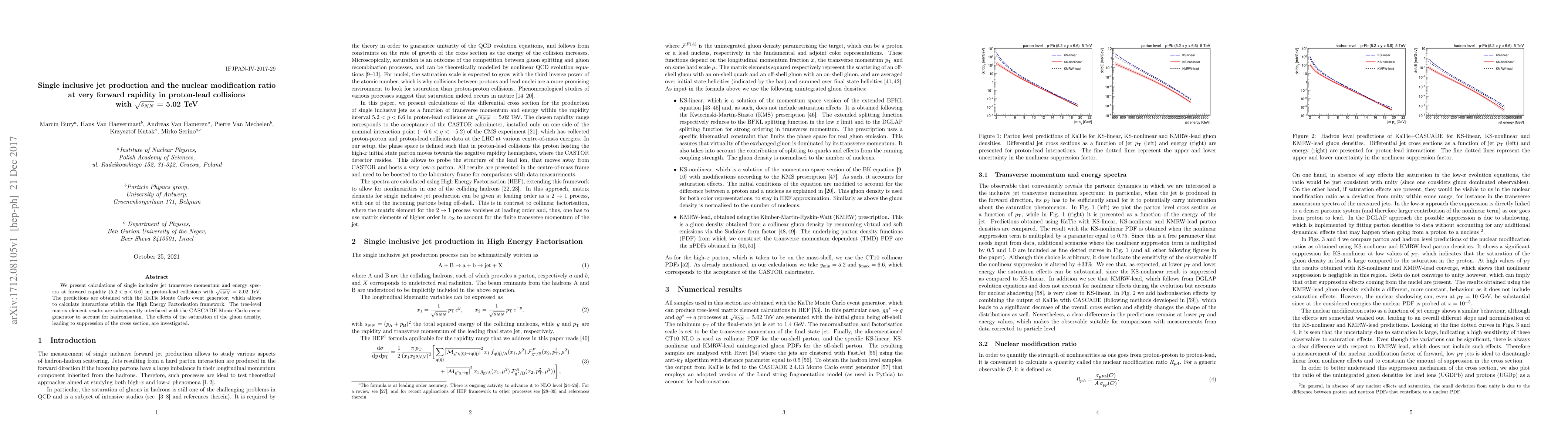 We present calculations of single inclusive jet transverse momentum and energy spectra at forward rapidity ($5.2\!<\!y\!<\!6.6$) in proton-lead collisions with $\sqrt{s_{NN}}$ = 5.02 TeV. The predictions are obtained with the KaTie Monte Carlo event generator, which allows to calculate interactions within the High Energy Factorisation framework. The tree-level matrix element results are subsequently interfaced with the CASCADE Monte Carlo event generator to account for hadronisation. The effects of the saturation of the gluon density, leading to suppression of the cross section, are investigated.