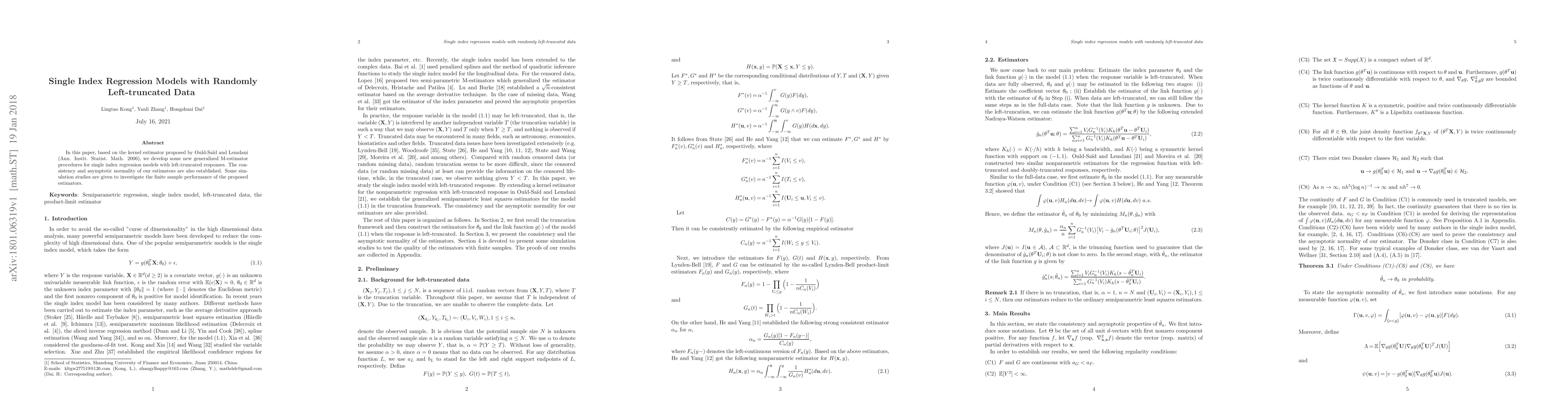 This paper develops new generalized M-estimator procedures for single index regression models with randomly left-truncated data, establishing their consistency and asymptotic normality. Simulation studies assess the finite sample performance of the proposed estimators.