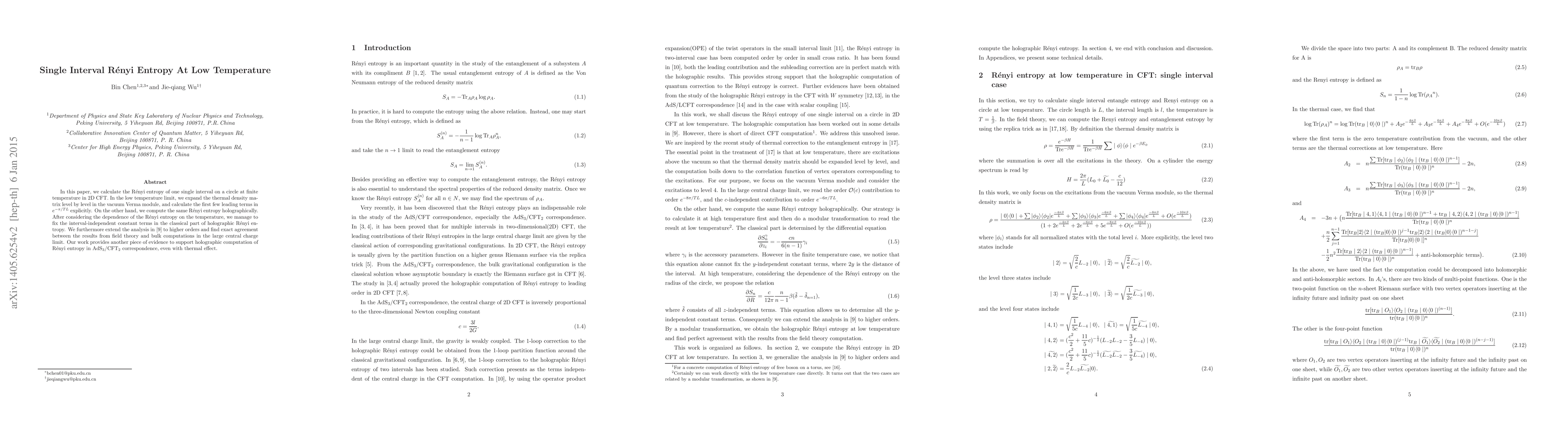 This paper calculates the Rényi entropy of a single interval on a circle in 2D CFT at finite temperature, finding agreement between field theory and holographic computations in the low temperature limit, and confirms the AdS$_3$/CFT$_2$ correspondence with thermal effects.
