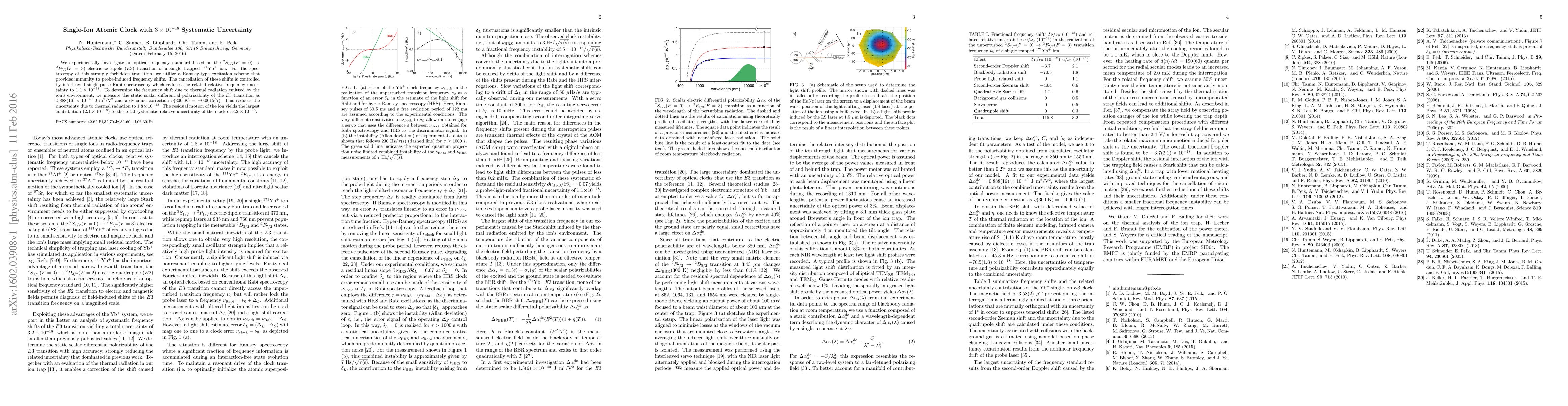 This paper reports on a single-ion atomic clock based on the $^2S_{1/2} \to {}^2F_{7/2}$ electric octupole transition in a trapped $^{171}$Yb$^+$ ion, achieving a systematic uncertainty of $3\times10^{-18}$. The clock's high precision is achieved through advanced spectroscopy techniques and careful control of environmental frequency shifts.