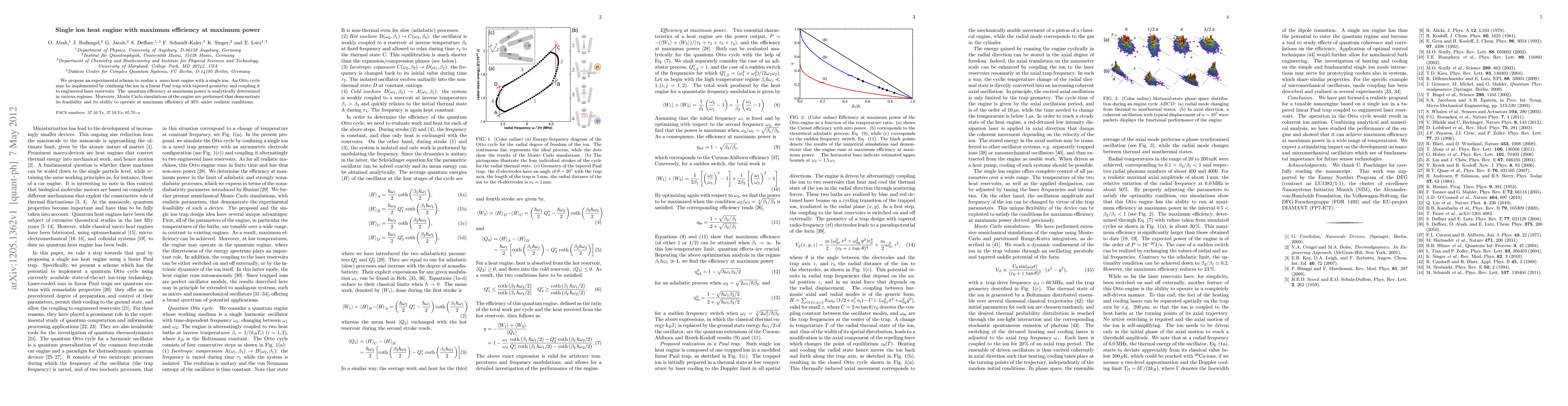 This paper proposes an experimental setup for a nano heat engine using a single ion in a linear Paul trap, implementing an Otto cycle with engineered laser reservoirs. Analytical and simulation results show the engine can achieve a maximum efficiency of 30% at maximum power.