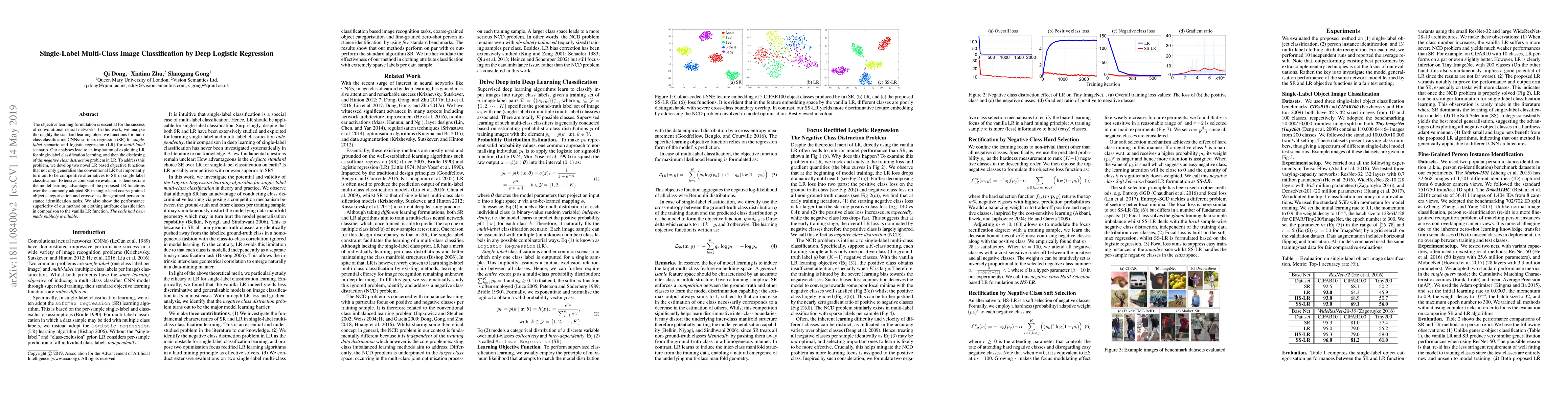 This paper explores the application of logistic regression (LR) for single-label multi-class image classification, addressing the negative class distraction problem inherent in LR. It proposes two novel LR-based objective functions that outperform softmax regression (SR) in tasks like coarse-grained object categorization and fine-grained person identification.