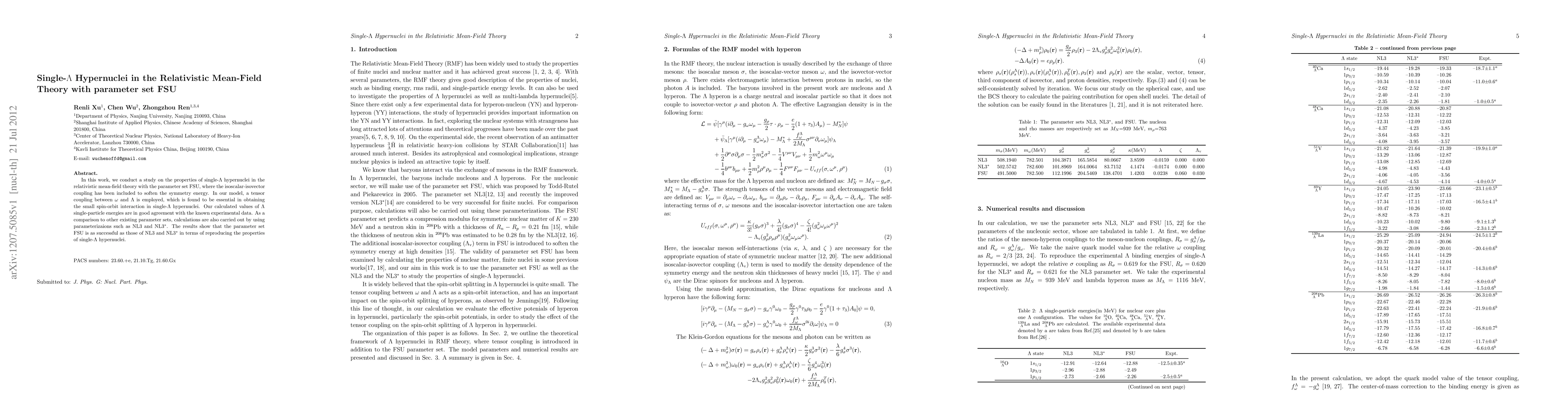 This study investigates the properties of single-{\Lambda} hypernuclei using the relativistic mean-field theory with the FSU parameter set, which includes isoscalar-isovector coupling to soften the symmetry energy. The tensor coupling between {\omega} and {\Lambda} is crucial for small spin-orbit interactions, and the results match well with experimental data.