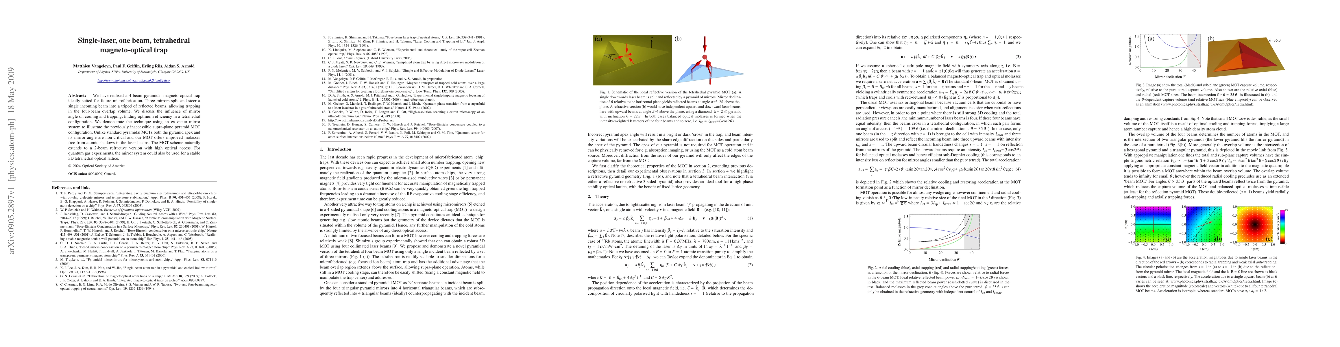 The research utilized a single circularly polarized laser beam split and reflected by three mirrors to form a tetrahedral magneto-optical trap (MOT). The angle of reflection was adjusted to optimize performance, demonstrating a supra-plane pyramid MOT configuration.