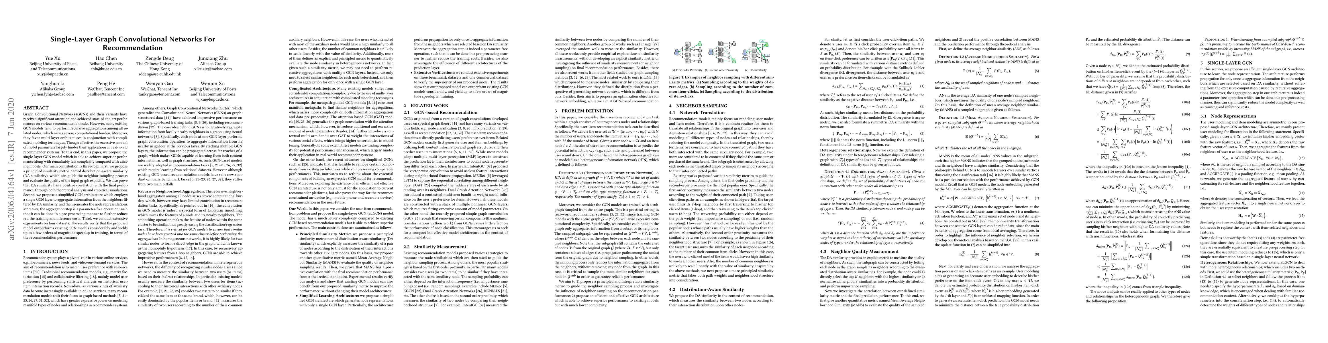 Graph Convolutional Networks (GCNs) and their variants have received significant attention and achieved start-of-the-art performances on various recommendation tasks. However, many existing GCN models tend to perform recursive aggregations among all related nodes, which arises severe computational burden. Moreover, they favor multi-layer architectures in conjunction with complicated modeling techniques. Though effective, the excessive amount of model parameters largely hinder their applications in real-world recommender systems. To this end, in this paper, we propose the single-layer GCN model which is able to achieve superior performance along with remarkably less complexity compared with existing models. Our main contribution is three-fold. First, we propose a principled similarity metric named distribution-aware similarity (DA similarity), which can guide the neighbor sampling process and evaluate the quality of the input graph explicitly. We also prove that DA similarity has a positive correlation with the final performance, through both theoretical analysis and empirical simulations. Second, we propose a simplified GCN architecture which employs a single GCN layer to aggregate information from the neighbors filtered by DA similarity and then generates the node representations. Moreover, the aggregation step is a parameter-free operation, such that it can be done in a pre-processing manner to further reduce red the training and inference costs. Third, we conduct extensive experiments on four datasets. The results verify that the proposed model outperforms existing GCN models considerably and yields up to a few orders of magnitude speedup in training, in terms of the recommendation performance.