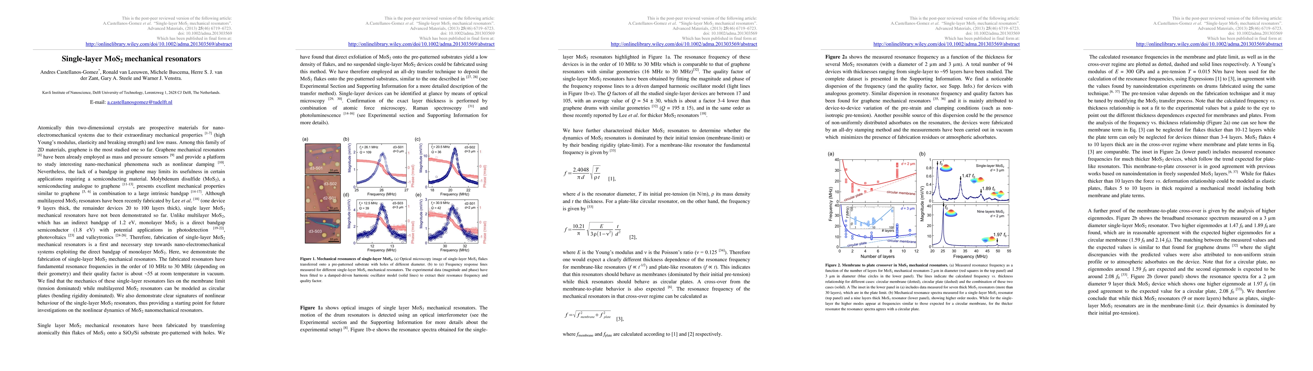 Researchers fabricated single-layer MoS2 mechanical resonators with high quality factor and demonstrated nonlinear behavior, marking a new area of investigation for nanomechanical resonance.