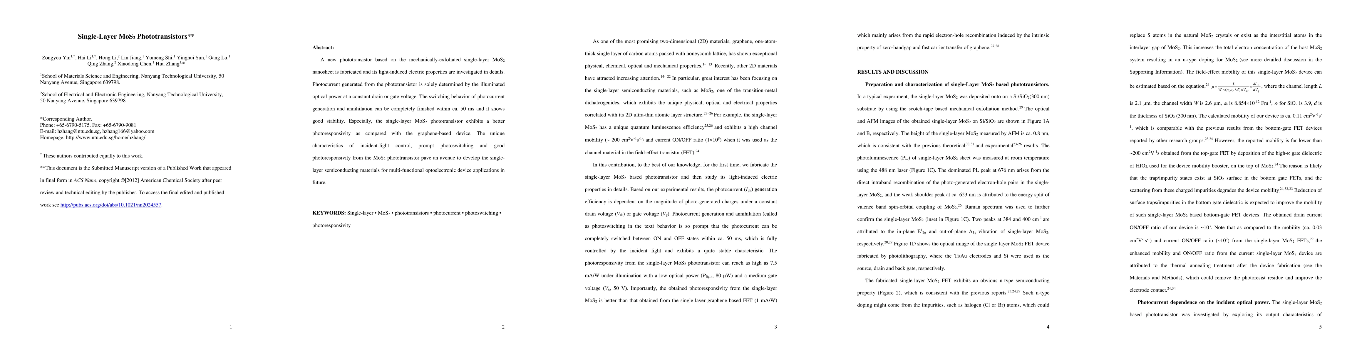 This research investigates the light-induced electric properties of a new phototransistor based on single-layer MoS2 and its potential for multi-functional optoelectronic device applications.