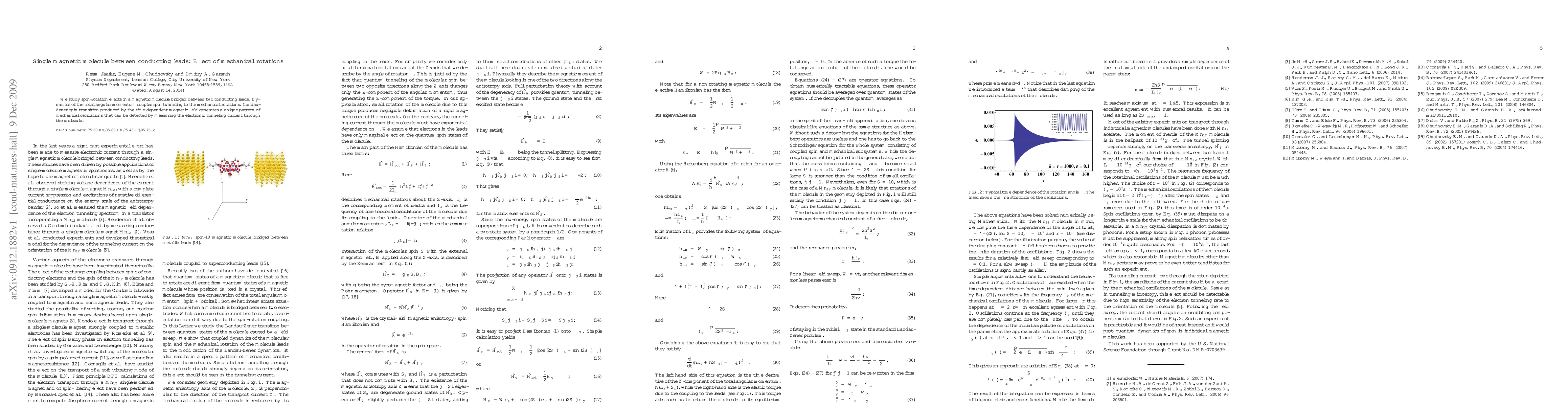 We study spin-rotation effects in a magnetic molecule bridged between two conducting leads. Dynamics of the total angular momentum couples spin tunneling to the mechanical rotations. Landau-Zener spin transition produced by the time-dependent magnetic field generates a unique pattern of mechanical oscillations that can be detected by measuring the electronic tunneling current through the molecule.