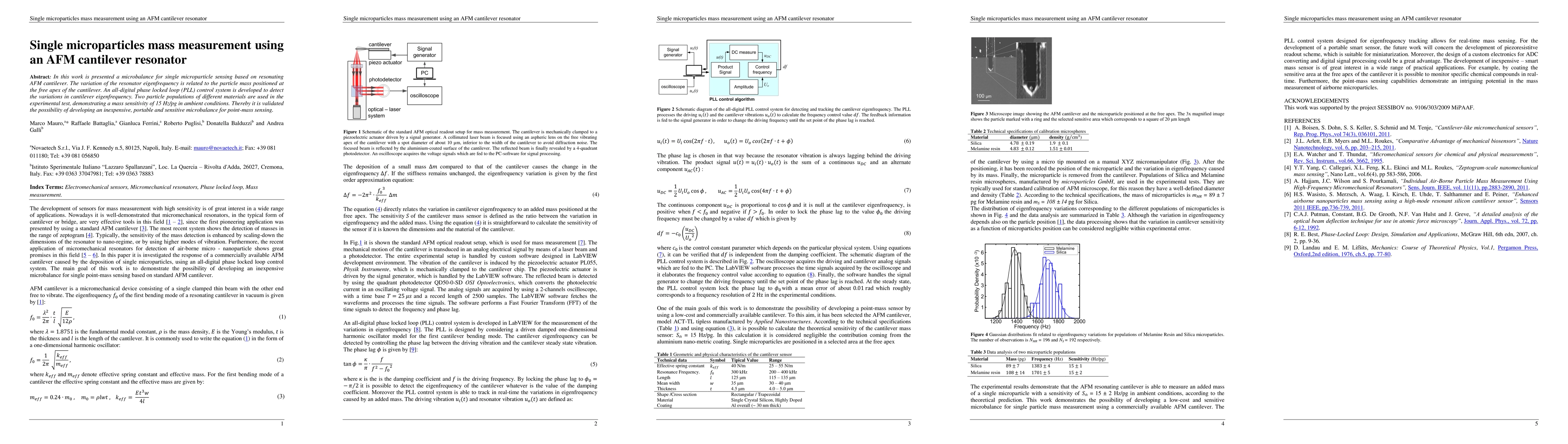 A microbalance for single microparticle sensing based on resonating AFM cantilever is presented.