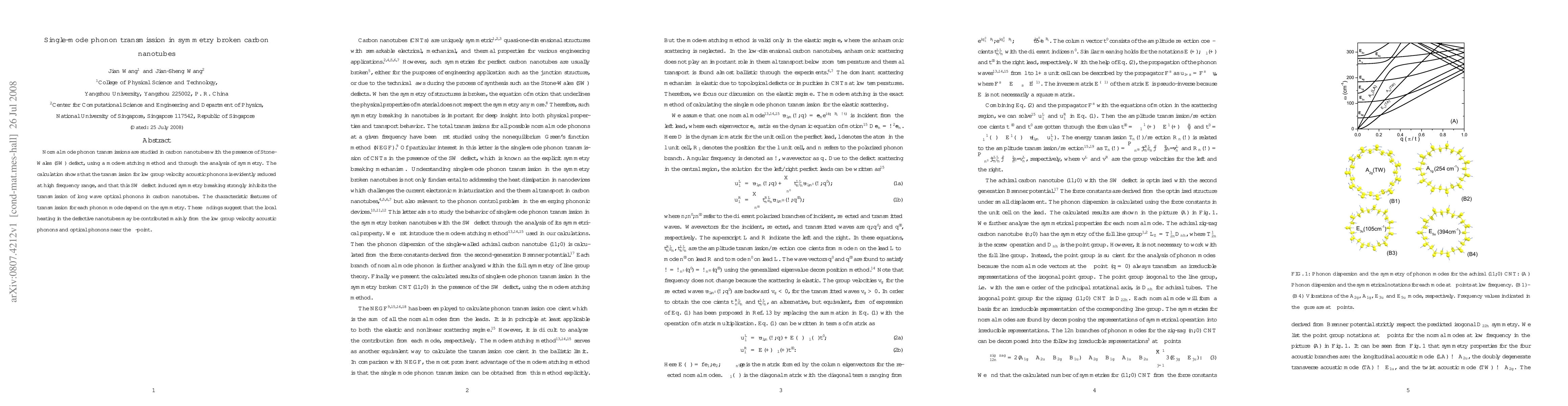 This study investigates phonon transmission in carbon nanotubes with a Stone-Wales defect, revealing that symmetry breaking significantly reduces the transmission of low-frequency acoustic phonons and long-wavelength optical phonons. The findings suggest that local heating in defective nanotubes is primarily due to these phonons.