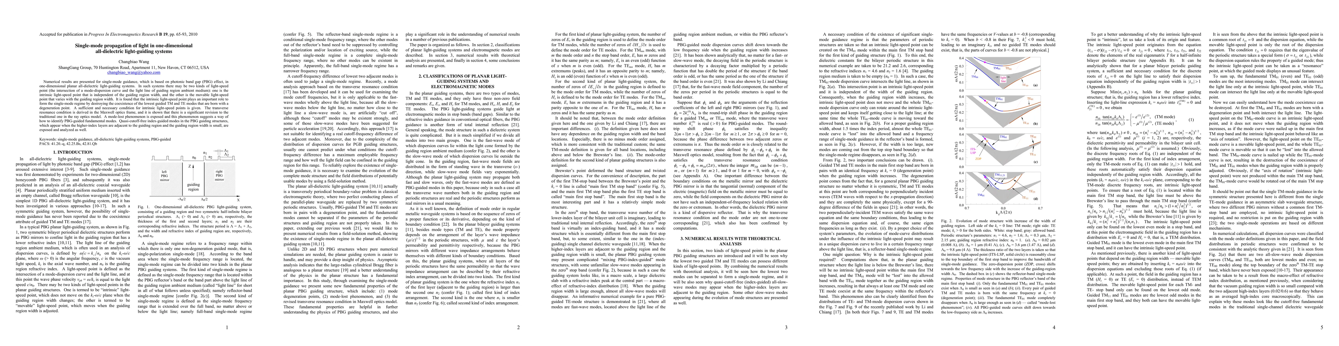 This paper investigates single-mode guidance in one-dimensional all-dielectric light-guiding systems using photonic band gap (PBG) effects. It identifies intrinsic and movable light-speed points, showing that the intrinsic point is crucial for establishing single-mode propagation by disrupting the degeneracy of lowest TM and TE modes.