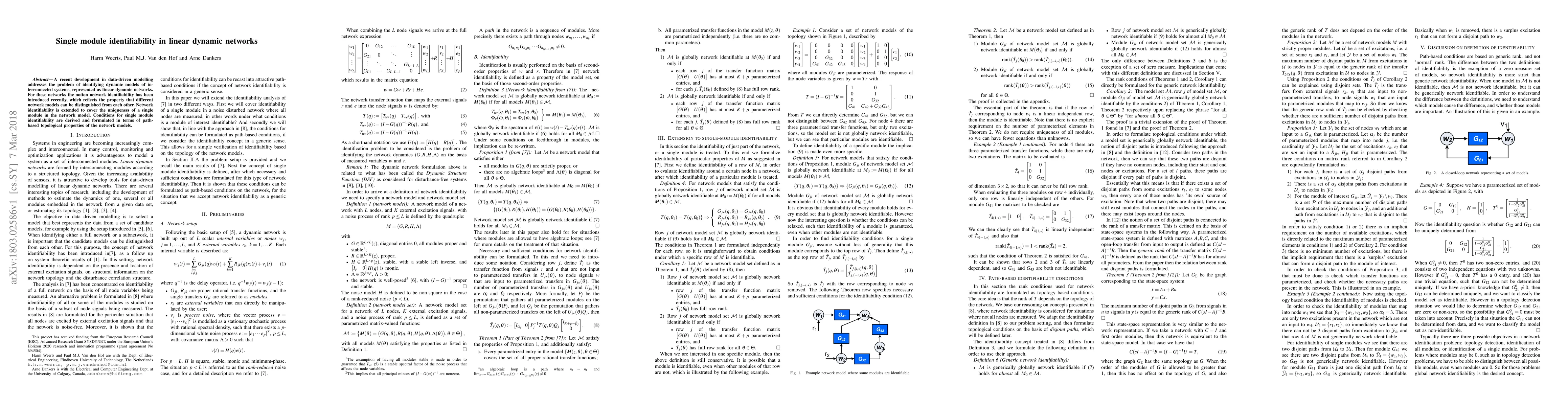Researchers developed a method to identify unique modules within linear dynamic networks, enabling differentiation between multiple network models. Conditions for single module identifiability are based on path-based topological properties of the network models.