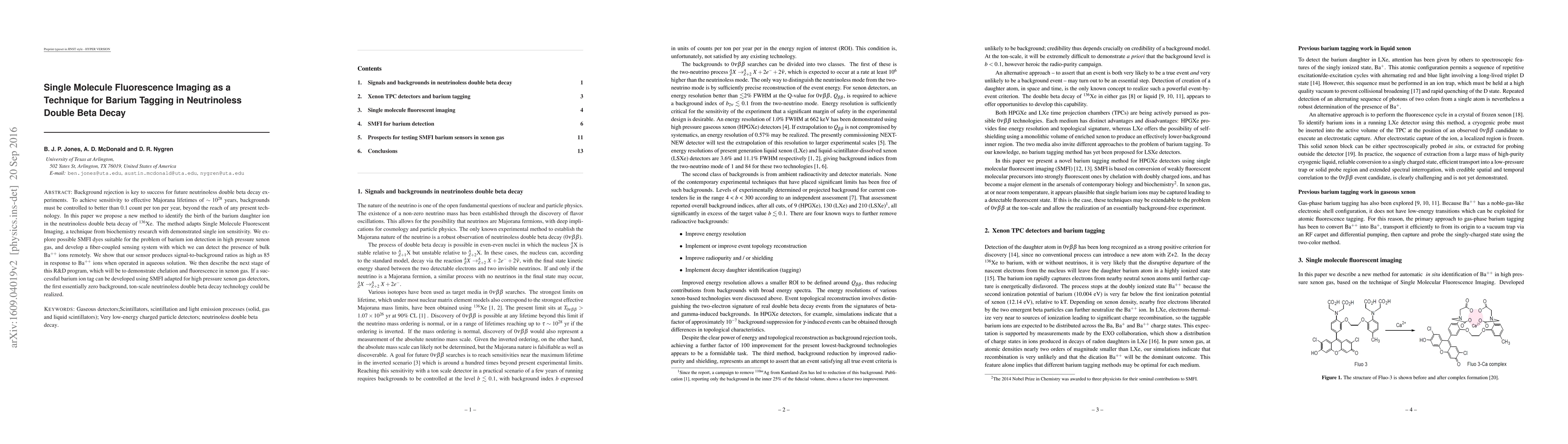 This paper proposes using Single Molecule Fluorescent Imaging (SMFI) to detect barium ions in neutrinoless double beta decay experiments, aiming for unprecedented background rejection. The method shows promising signal-to-background ratios in aqueous solutions and outlines future steps to adapt it for high pressure xenon gas detectors.