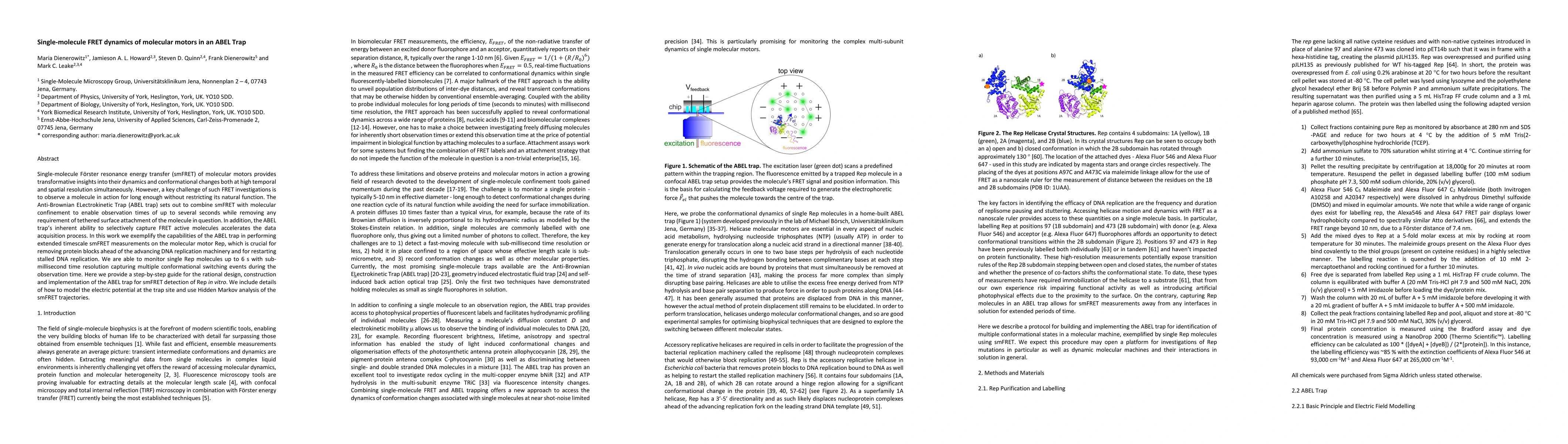 Researchers developed an ABEL trap to study molecular motors like Rep with single-molecule FRET, capturing up to 6 seconds of dynamics with high resolution.