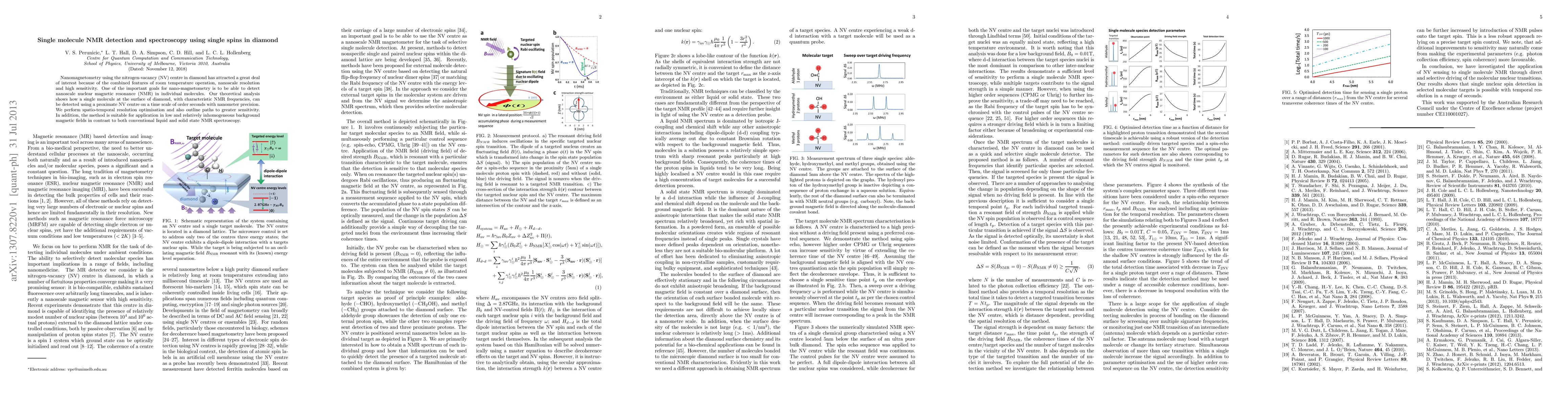 The paper presents a theoretical framework and numerical simulations for single-molecule NMR detection using NV centers in diamond, including spatio-temporal resolution optimization and control sequences.