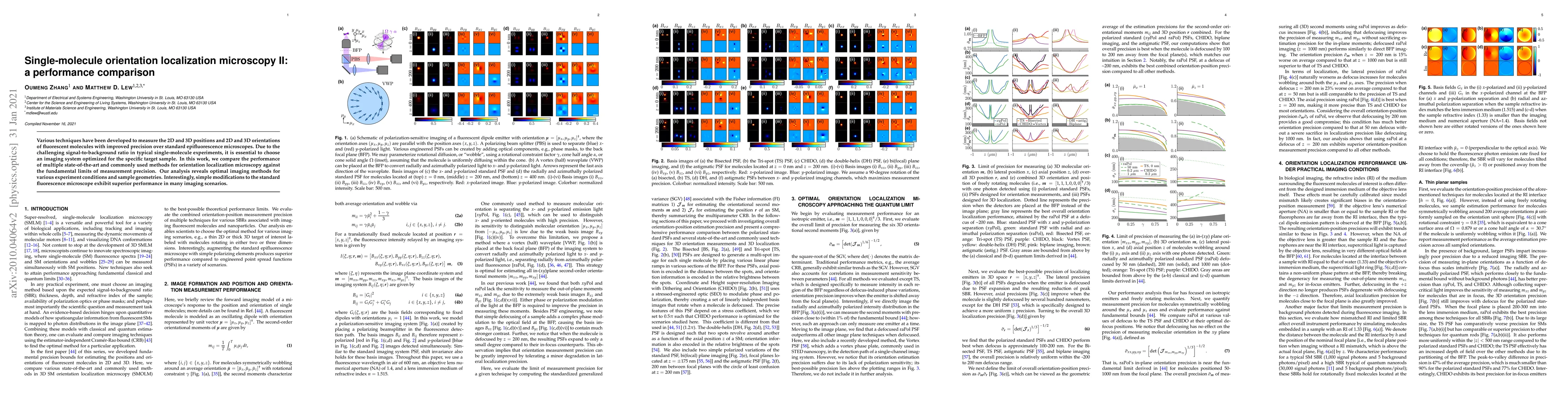 This paper compares the performance of various orientation localization microscopy techniques, revealing that simple modifications to standard fluorescence microscopes can often outperform state-of-the-art methods, providing optimal imaging solutions for different experimental conditions and sample geometries.