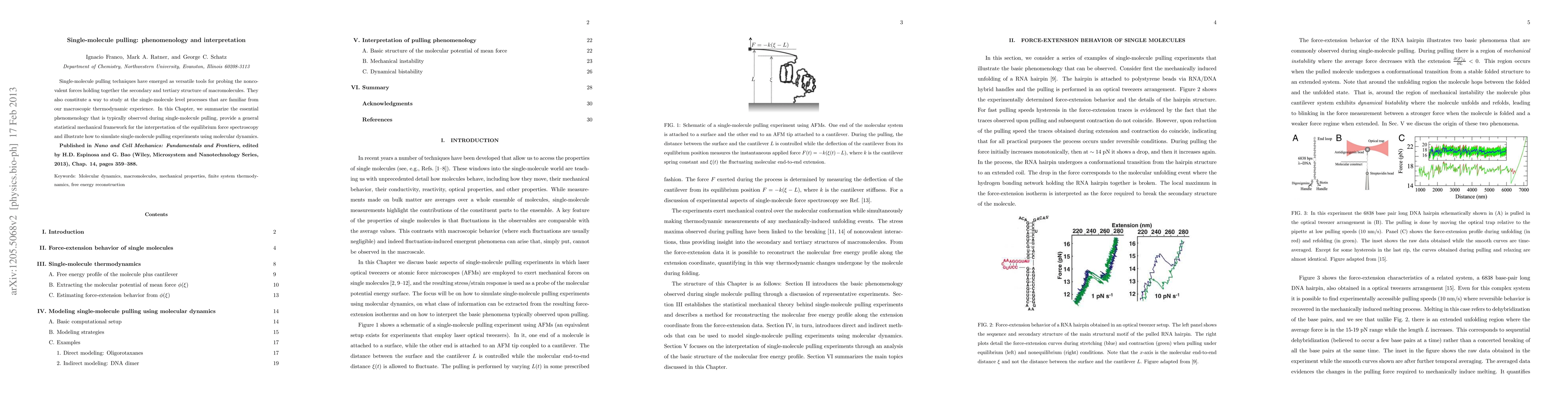 Single-molecule pulling techniques have emerged as versatile tools for probing the noncovalent forces holding together the secondary and tertiary structure of macromolecules. They also constitute a way to study at the single-molecule level processes that are familiar from our macroscopic thermodynamic experience. In this Chapter, we summarize the essential phenomenology that is typically observed during single-molecule pulling, provide a general statistical mechanical framework for the interpretation of the equilibrium force spectroscopy and illustrate how to simulate single-molecule pulling experiments using molecular dynamics.