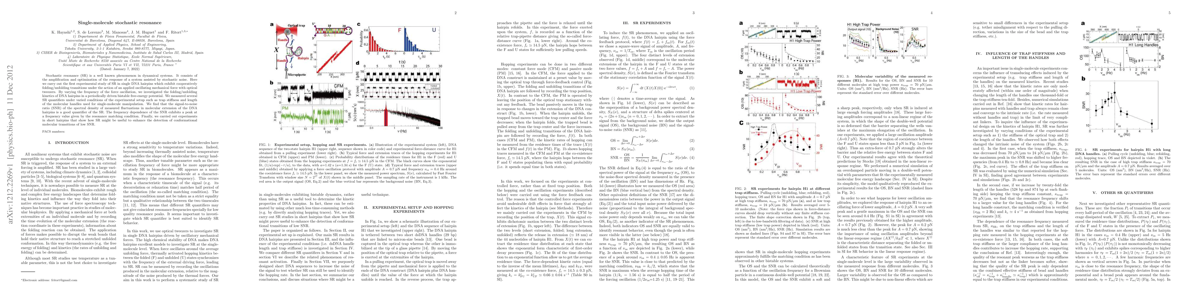 Researchers studied single DNA hairpins to understand stochastic resonance, a phenomenon that amplifies system response with random noise, and found it enhances detection of molecular transitions in low signal conditions.