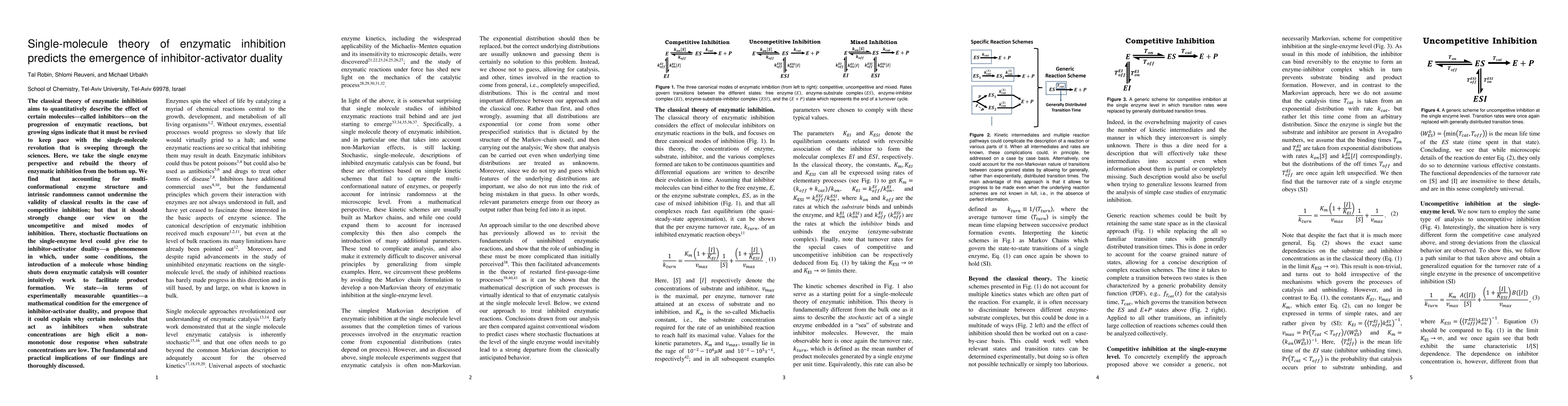 This study revises enzymatic inhibition theory considering single-molecule dynamics, finding that under certain conditions, an inhibitor can unexpectedly enhance product formation due to stochastic enzyme fluctuations. A mathematical condition for this inhibitor-activator duality is proposed.