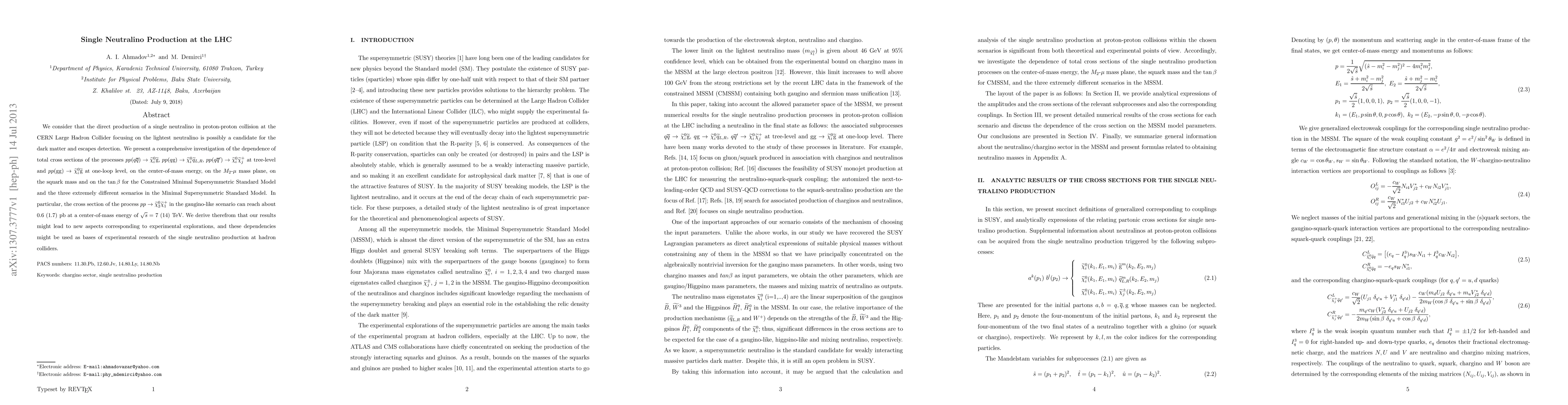 This paper investigates the direct production of the lightest neutralino at the LHC, considering various production processes and their dependence on different parameters. The study finds that the cross section for certain processes can reach up to 1.7 pb at 14 TeV, suggesting potential new avenues for experimental exploration of neutralino production.