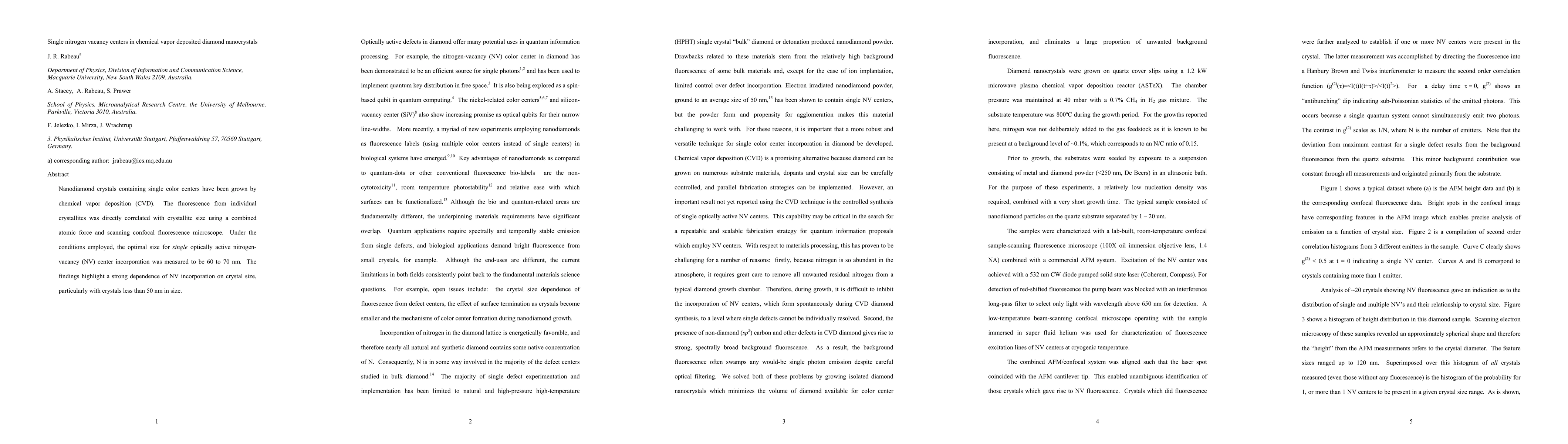This research demonstrates the growth of nanodiamond crystals via CVD, showing that the optimal size for single optically active nitrogen-vacancy center incorporation is between 60 to 70 nm. The study highlights a strong size dependence of NV center incorporation, especially for crystals under 50 nm.