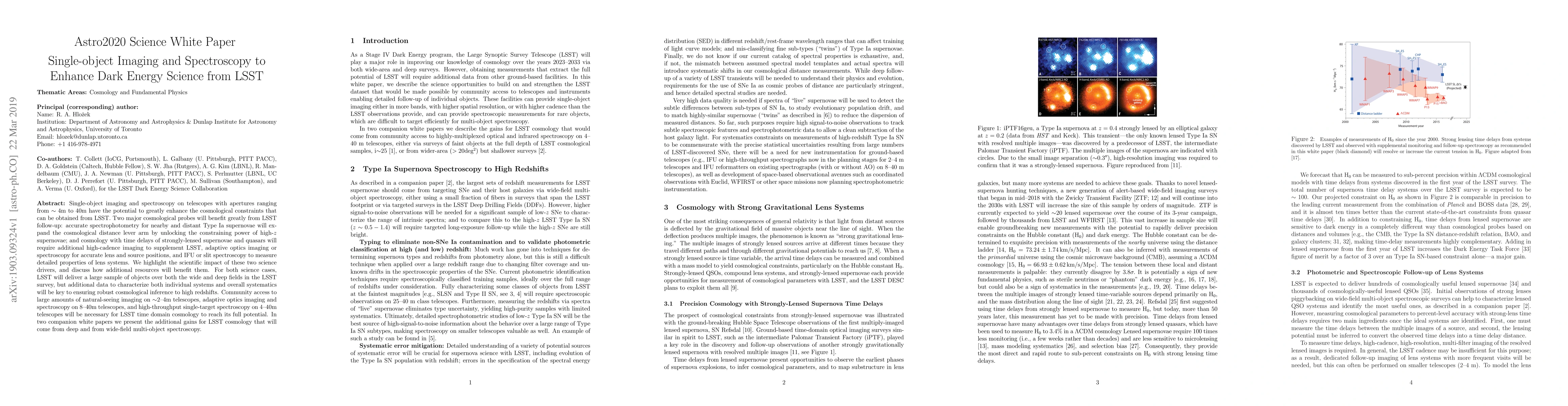 This paper discusses how single-object imaging and spectroscopy on telescopes with varying apertures can significantly enhance dark energy science from the Large Synoptic Survey Telescope (LSST). It emphasizes the benefits of spectrophotometry for Type Ia supernovae and time delays of strongly-lensed objects, stressing the need for additional resources to achieve robust cosmological inference.