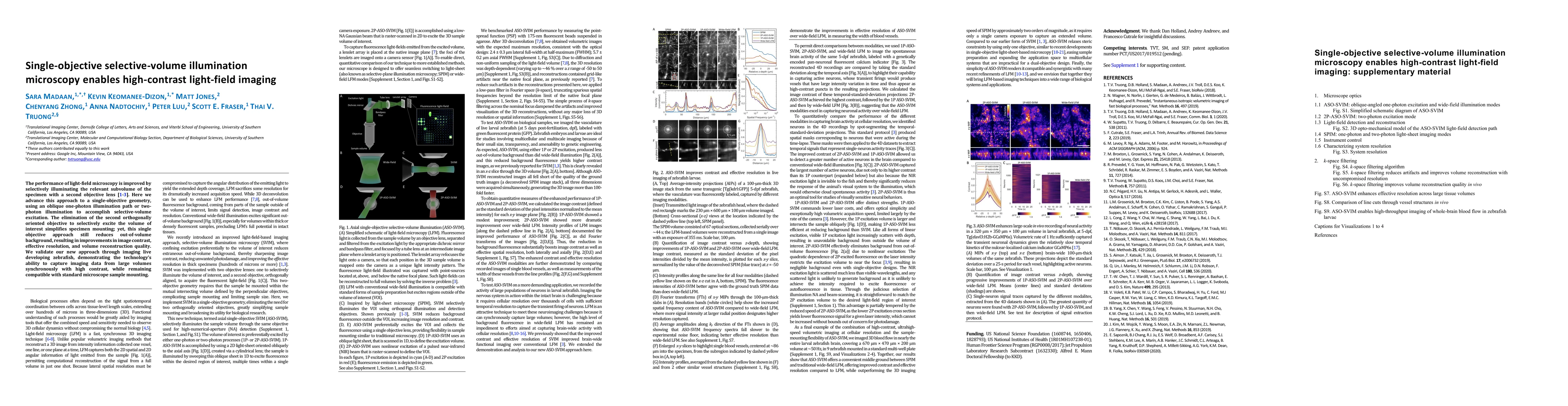This paper introduces a single-objective selective-volume illumination microscopy technique that enhances light-field imaging by reducing out-of-volume background, improving contrast and resolution, and simplifying specimen mounting. The method is validated through high-contrast imaging of live developing zebrafish.