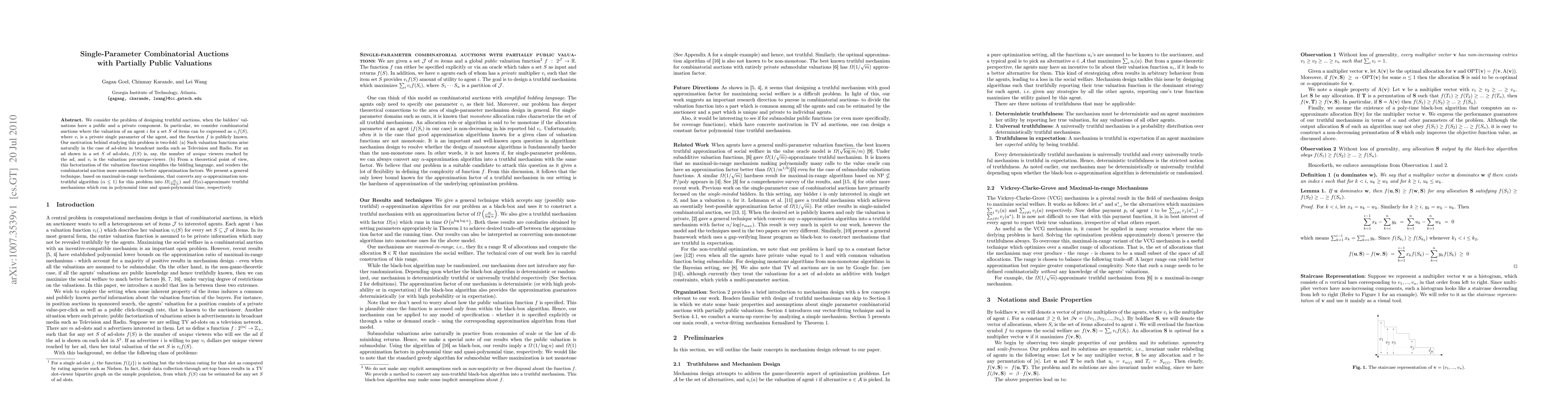 Researchers develop a technique to create truthful auctions for combinatorial auctions with partially public valuations, improving approximation factors and running times.
