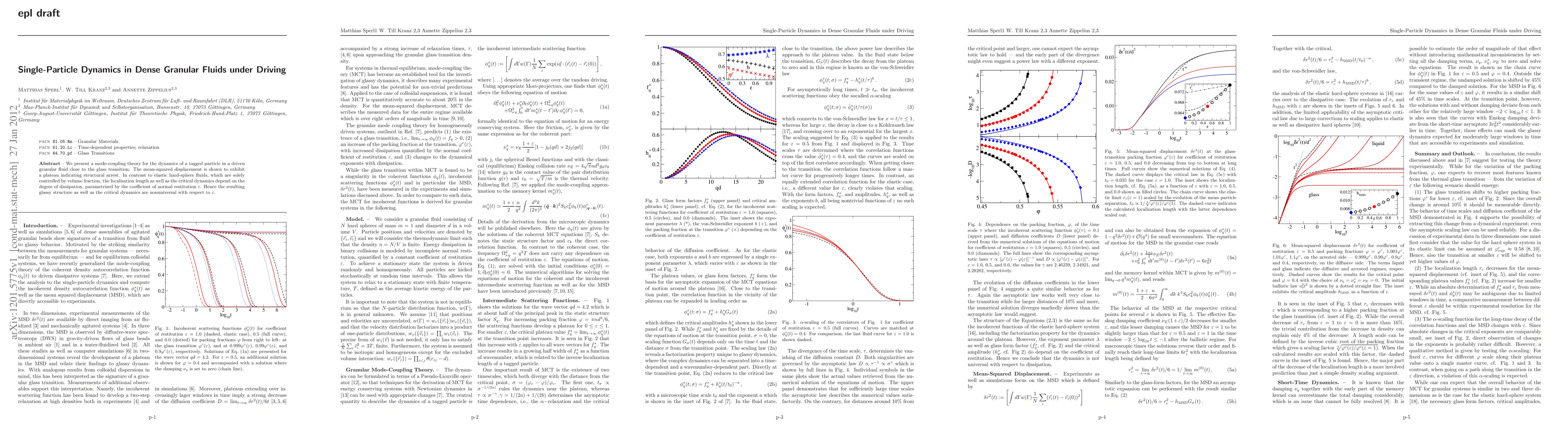 This paper develops a mode-coupling theory for a tagged particle in a driven granular fluid near the glass transition, revealing a plateau in mean-squared displacement indicative of structural arrest. Unlike elastic hard-sphere fluids, the dynamics here depend on both volume fraction and dissipation, leading to nonuniversal glassy structures and critical dynamics.