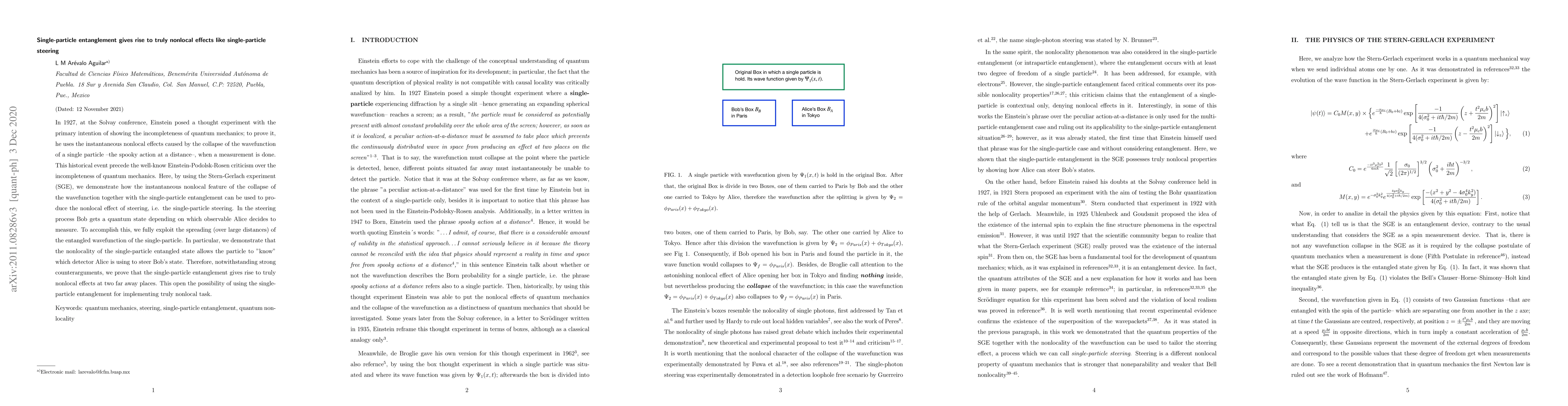 In 1927, at the Solvay conference, Einstein posed a thought experiment with the primary intention of showing the incompleteness of quantum mechanics; to prove it, he uses the instantaneous nonlocal effects caused by the collapse of the wave function of a single particle -the spooky action at a distance-, when a measurement is done. This historical event precede the well-know Einstein-Podolsk-Rosen criticism over the incompleteness of quantum mechanics. Here, by using the Stern-Gerlach experiment (SGE), we demonstrate how the instantaneous nonlocal feature of the collapse of the wave function together with the single-particle entanglement can be used to produce the nonlocal effect of steering. In the steering process Bob gets a quantum state depending on which observable Alice decides to measure. To accomplish this, we fully exploit the spreading (over large distances) of the entangled wave function of the single-particle. In particular, we demonstrate that the nonlocality of the single-particle entanglement allows the particle to know which detector Alice is using to steer Bob's state. Therefore, notwithstanding strong counterarguments, we prove that the single-particle entanglement gives rise to truly nonlocal effects at two far a away places. This open the possibility of using the single-particle entanglement for implementing truly nonlocal task.