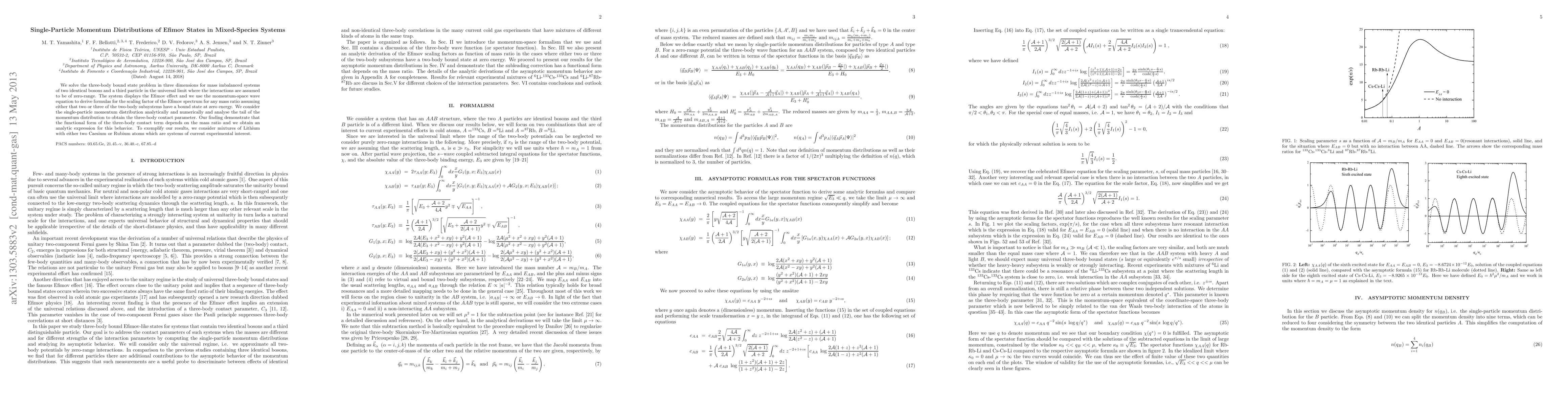 This paper investigates the three-body bound state problem in mass-imbalanced systems, revealing the Efimov effect and deriving formulas for the scaling factor of the Efimov spectrum. It analytically and numerically examines the single-particle momentum distribution, demonstrating that the three-body contact term's functional form depends on the mass ratio and providing an analytic expression for this behavior.