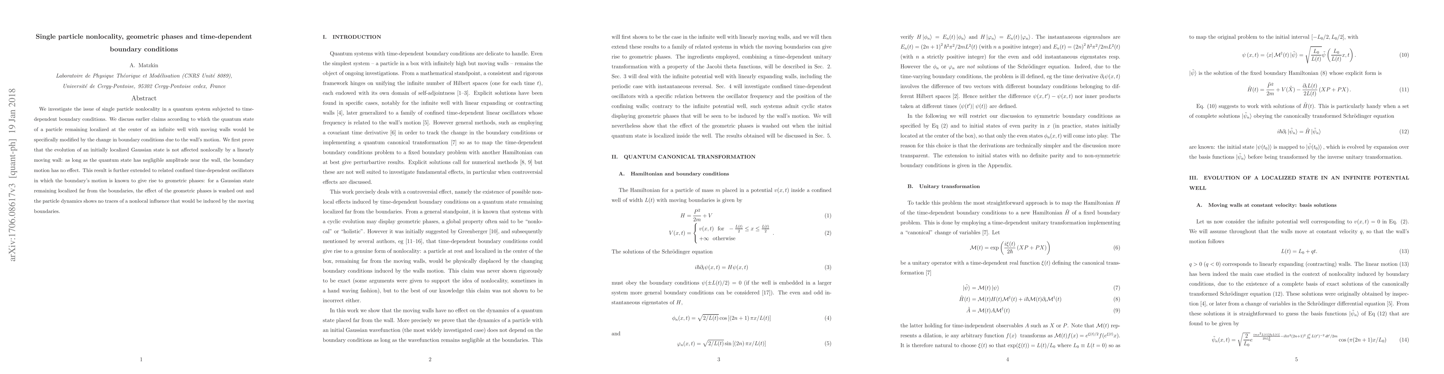 Researchers prove that time-dependent boundary conditions don't affect the quantum state of a localized particle unless its amplitude near the wall is significant. This finding applies to related oscillators with geometric phases.