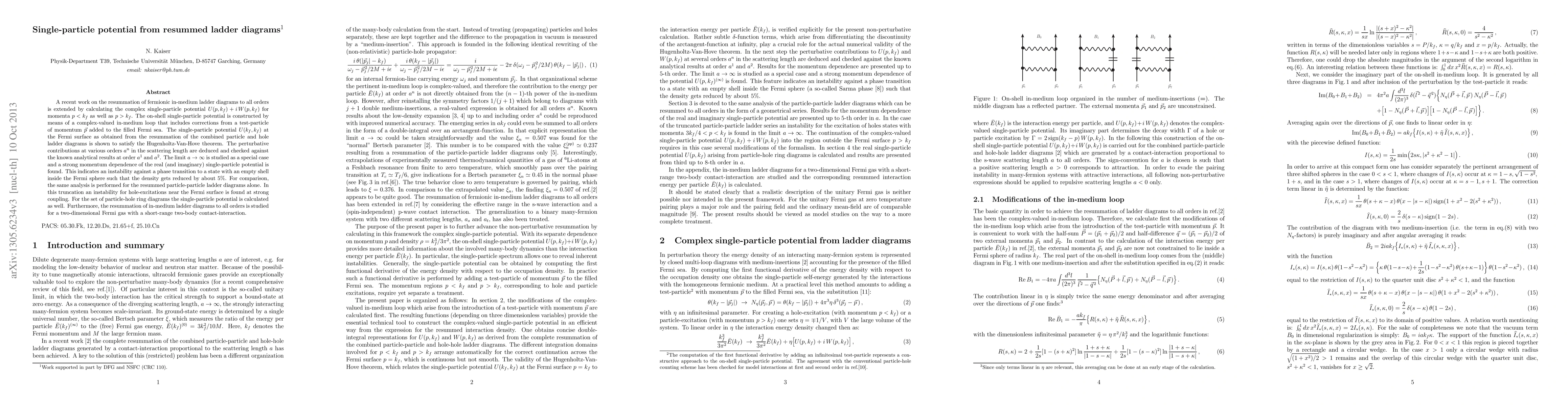 all orders is extended by calculating the complex single-particle potential