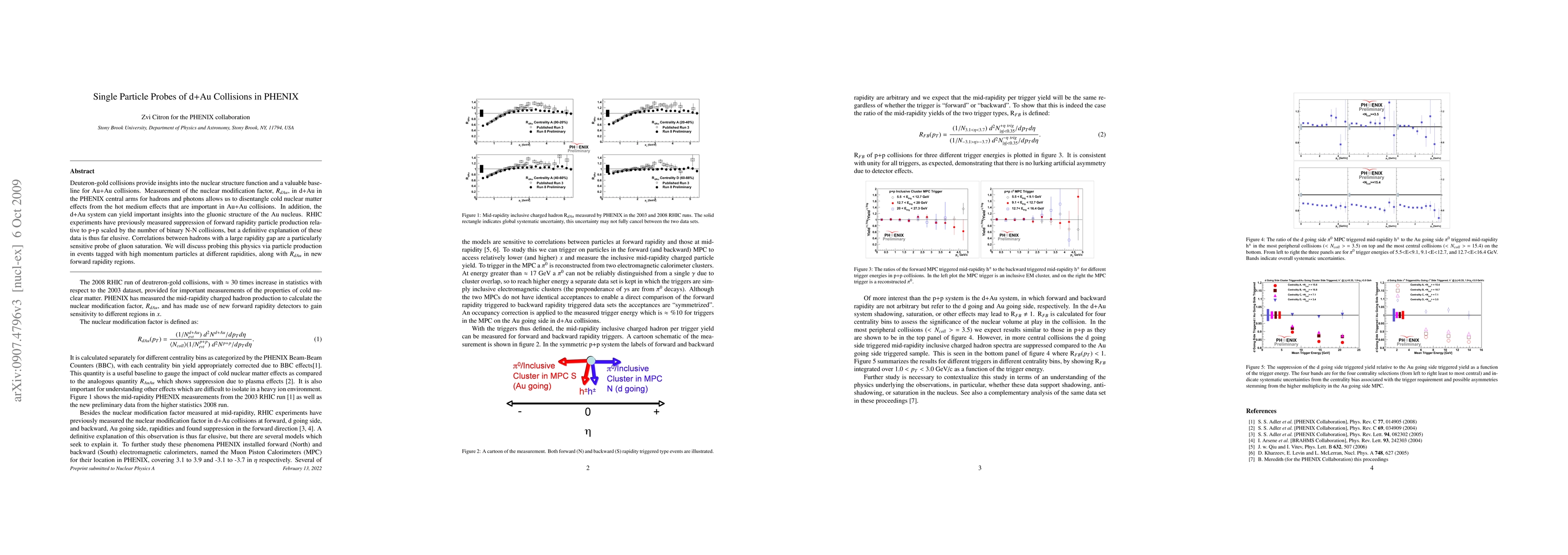 Deuteron-gold collisions provide insights into the nuclear structure function and a valuable baseline for Au+Au collisions. Measurement of the nuclear modification factor, R_{dAu}, in d+Au in the PHENIX central arms for hadrons and photons allows us to disentangle cold nuclear matter effects from the hot medium effects that are important in Au+Au collisions. In addition, the d+Au system can yield important insights into the gluonic structure of the Au nucleus. RHIC experiments have previously measured suppression of forward rapidity particle production relative to p+p scaled by the number of binary N-N collisions, but a definitive explanation of these data is thus far elusive. Correlations between hadrons with a large rapidity gap are a particularly sensitive probe of gluon saturation. We will discuss probing this physics via particle production in events tagged with high momentum particles at different rapidities, along with R_{dAu} in new forward rapidity regions.