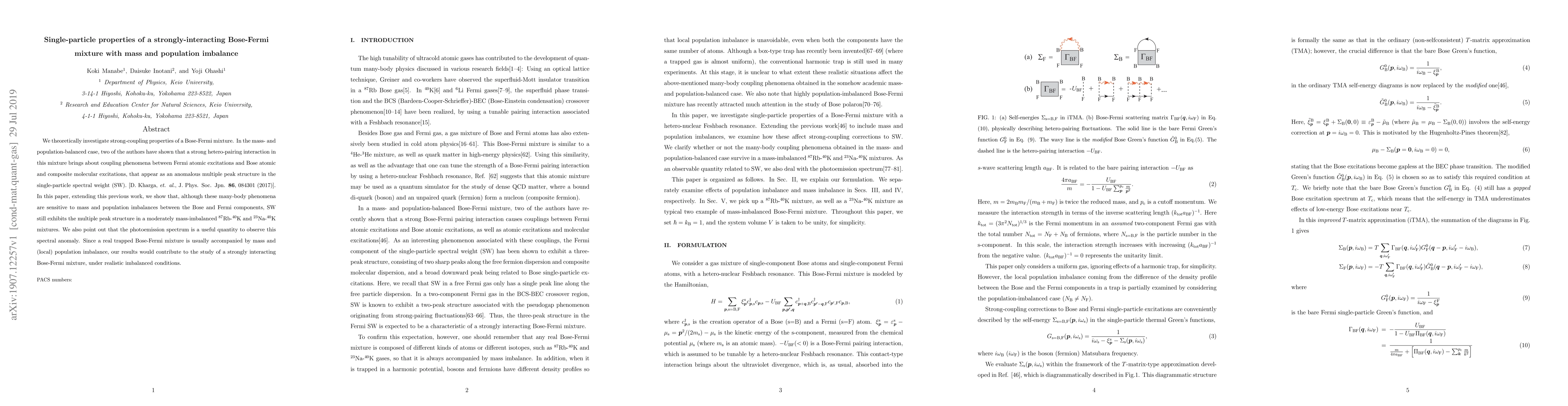 This paper investigates the strong-coupling properties of a Bose-Fermi mixture with mass and population imbalance, showing that despite these imbalances, the single-particle spectral weight still exhibits a multiple peak structure. The photoemission spectrum is highlighted as a useful tool to observe this anomaly, contributing to the study of realistic trapped Bose-Fermi mixtures.