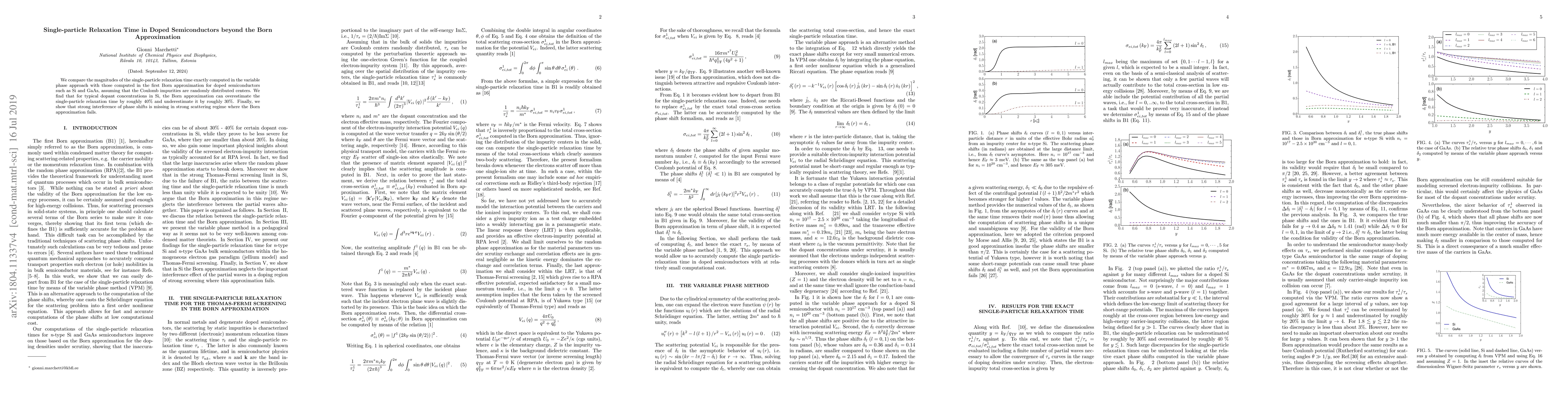 We compare the magnitudes of the single-particle relaxation time accurately computed by the variable phase approach are with those computed in the first Born approximation for doped semiconductors such as Si and GaAs, assuming that the Coulomb impurities are randomly distributed centers. We find that for typical dopant concentrations in Si the Born approximation can overestimate the single-particle relaxation time by roughly 40\% and underestimate it by roughly 30\%. It is shown that in the case of GaAs the discrepancies are typically less severe. Our analysis shows that in general these large discrepancies in Si arise from strong violations of the Friedel sum rule. This breakdown occurs in a range of doping densities for which the random phase approximation starts to break down. Moreover, our results suggest that a multi-ion correction to the electron-impurity scattering is needed for high dopant concentrations.