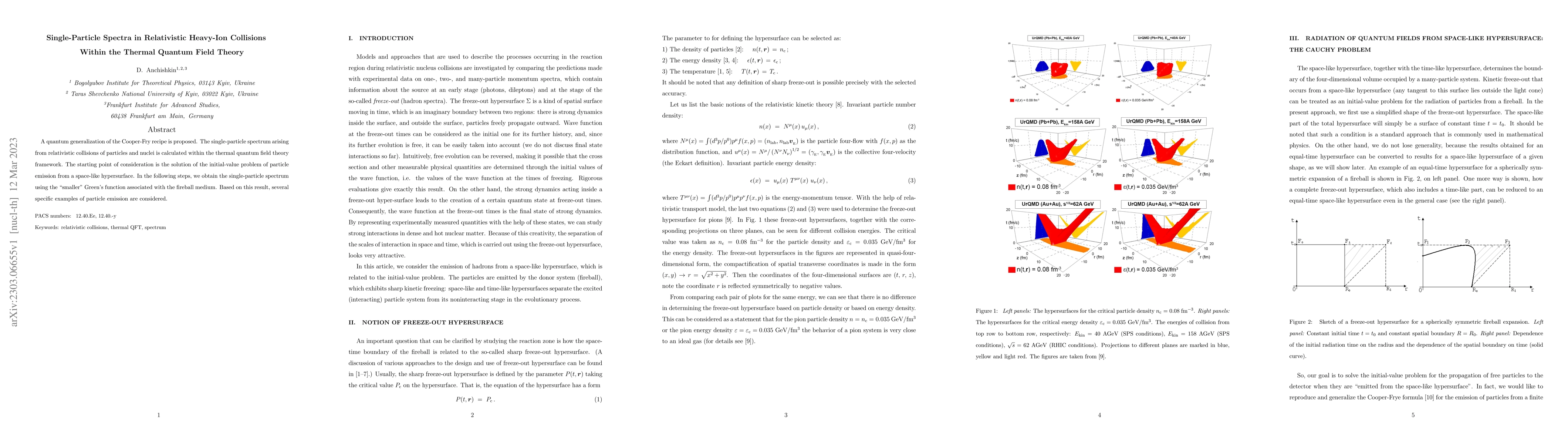 This paper proposes a quantum generalization of the Cooper-Fry recipe to calculate the single-particle spectrum from relativistic heavy-ion collisions. The study employs thermal quantum field theory, solving the initial-value problem of particle emission and utilizing the "smaller" Green's function to derive the spectrum.