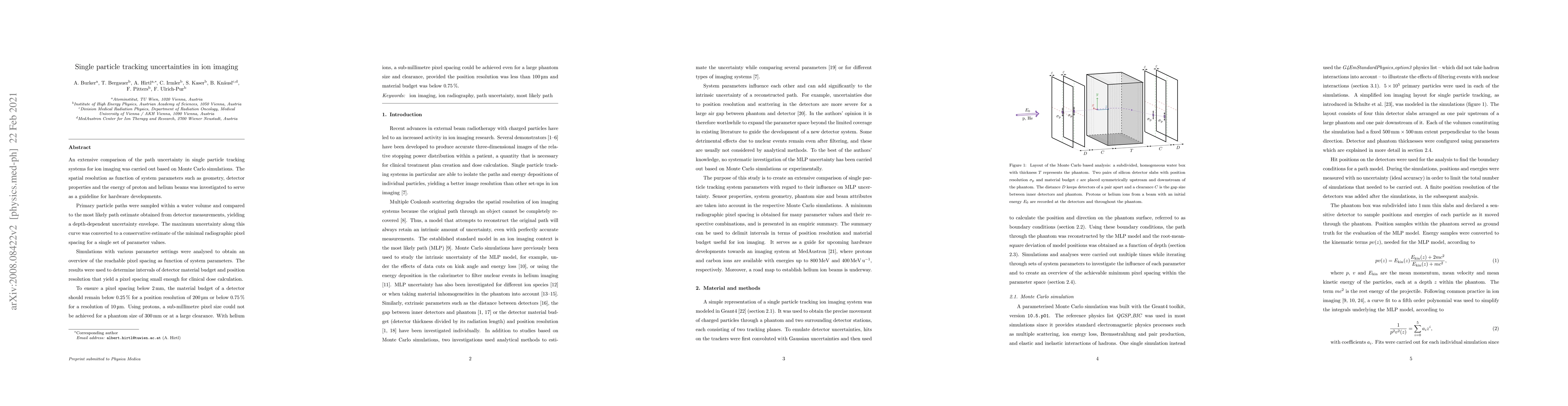Research investigates single particle tracking uncertainties in ion imaging systems, finding that a sub-millimeter pixel size can be achieved with helium ions but not protons under certain conditions.