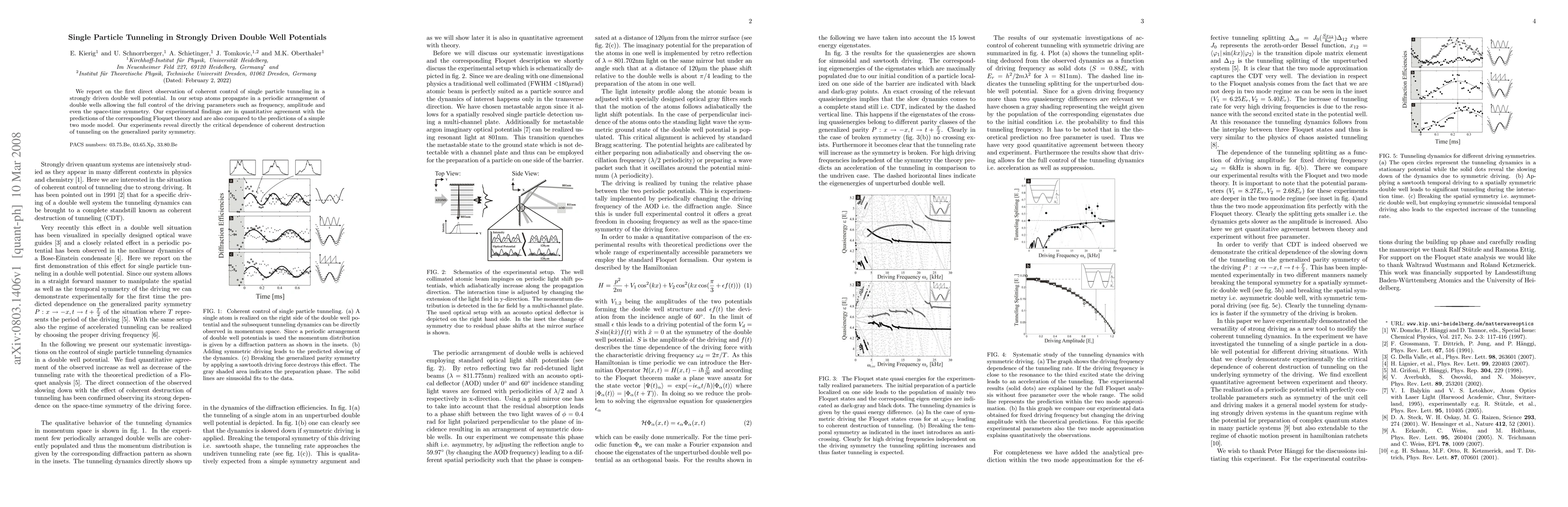 This paper reports the first direct observation of coherent control over single particle tunneling in strongly driven double well potentials, demonstrating the critical role of generalized parity symmetry in the coherent destruction of tunneling, with findings matching predictions from Floquet theory and a two mode model.