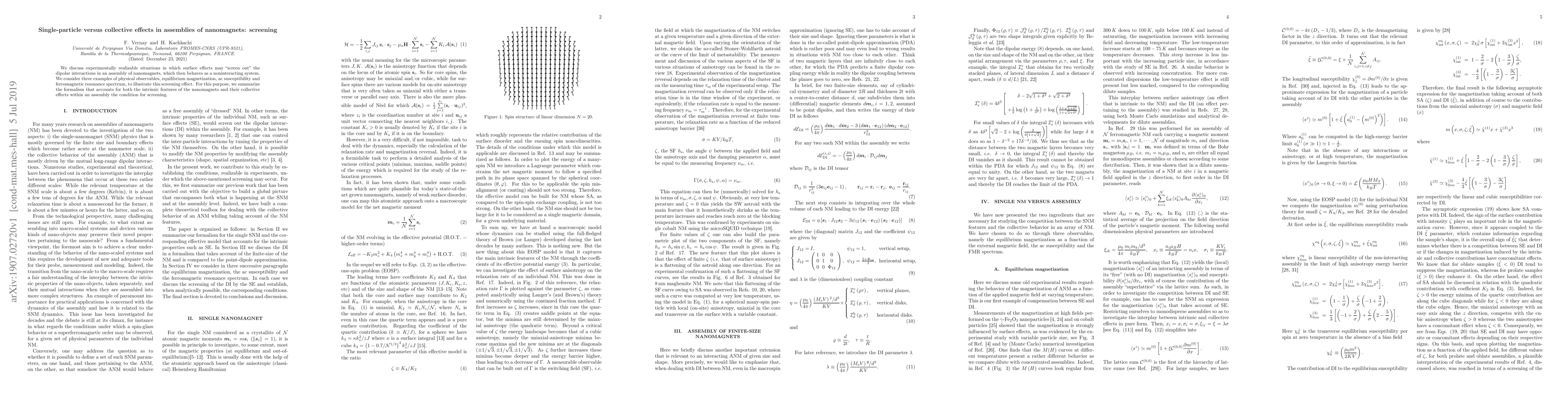 This paper explores how surface effects can "screen out" dipolar interactions in assemblies of nanomagnets, making them behave as noninteracting systems. It examines three physical observables—equilibrium magnetization, ac susceptibility, and ferromagnetic resonance spectrum—to demonstrate this screening effect.