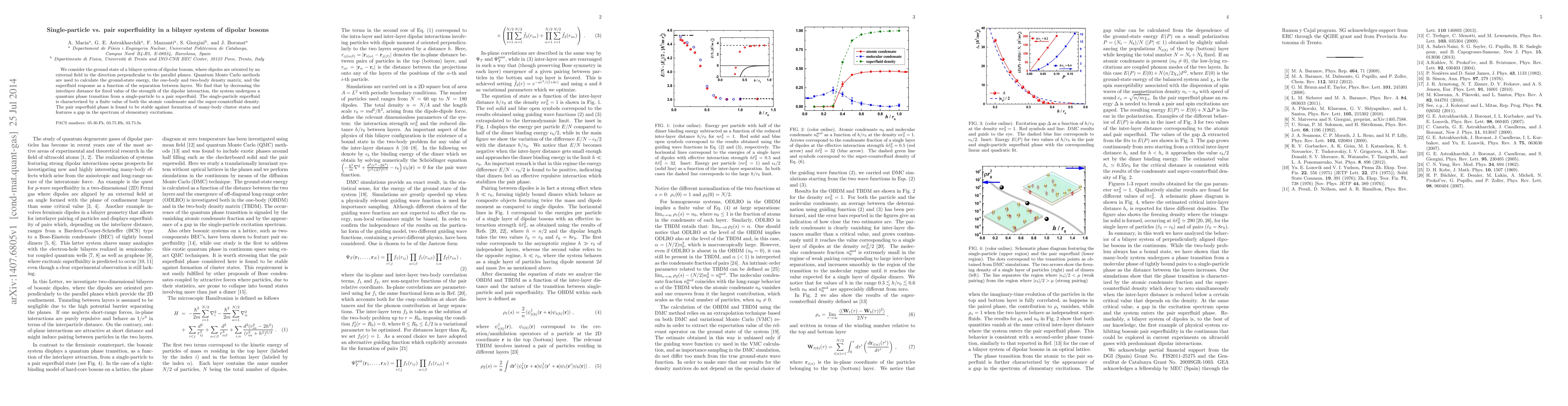 This study investigates a bilayer system of dipolar bosons using quantum Monte Carlo methods, revealing a quantum phase transition from single-particle to pair superfluidity as the interlayer distance decreases. The pair superfluid phase exhibits stability and a gap in excitations, contrasting with the single-particle superfluid characterized by finite condensate and super-counterfluid density.