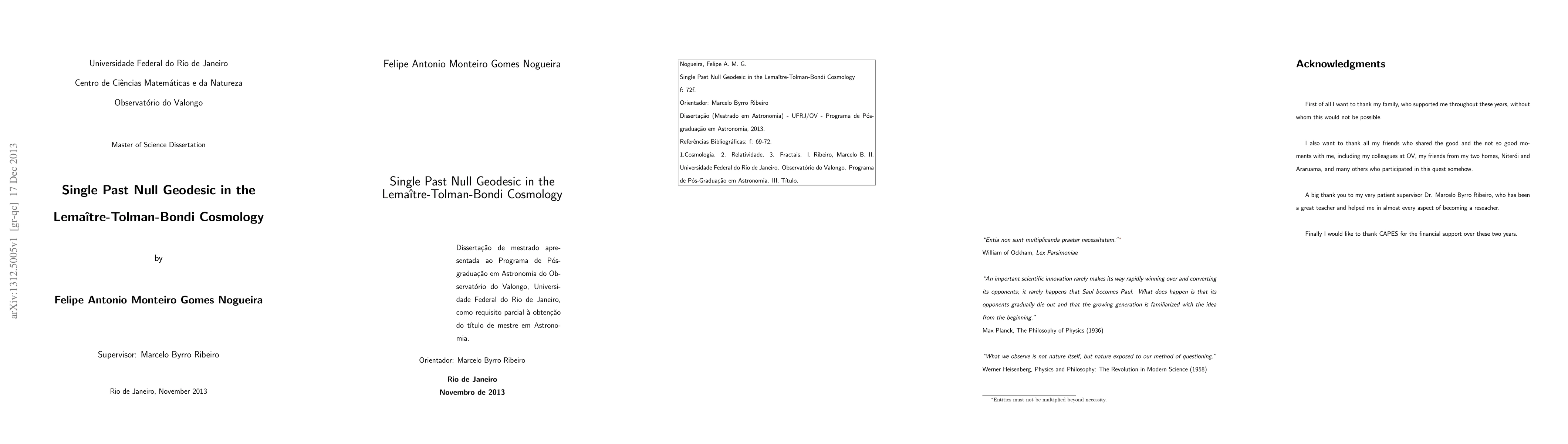This work provides a general discussion of the spatially inhomogeneous Lema\^itre-Tolman-Bondi (LTB) cosmology, as well as its basic properties and many useful relevant quantities, such as the cosmological distances. We apply the concept of the single null geodesic to produce some simple analytical solutions for observational quantities such as the redshift. As an application of the single null geodesic technique, we carry out a fractal approach to the parabolic LTB model, comparing it to the spatially homogeneous Einstein-de Sitter cosmology. The results obtained indicate that the standard model, in this case represented by the Einstein-de Sitter cosmology, can be equivalently described by a fractal distribution of matter, as we found that different single fractal dimensions describe different scale ranges of the parabolic LTB matter distribution. It is shown that at large ranges the parabolic LTB model with fractal dimension equal to 0.5 approximates the matter distribution of the Einstein-de Sitter universe.