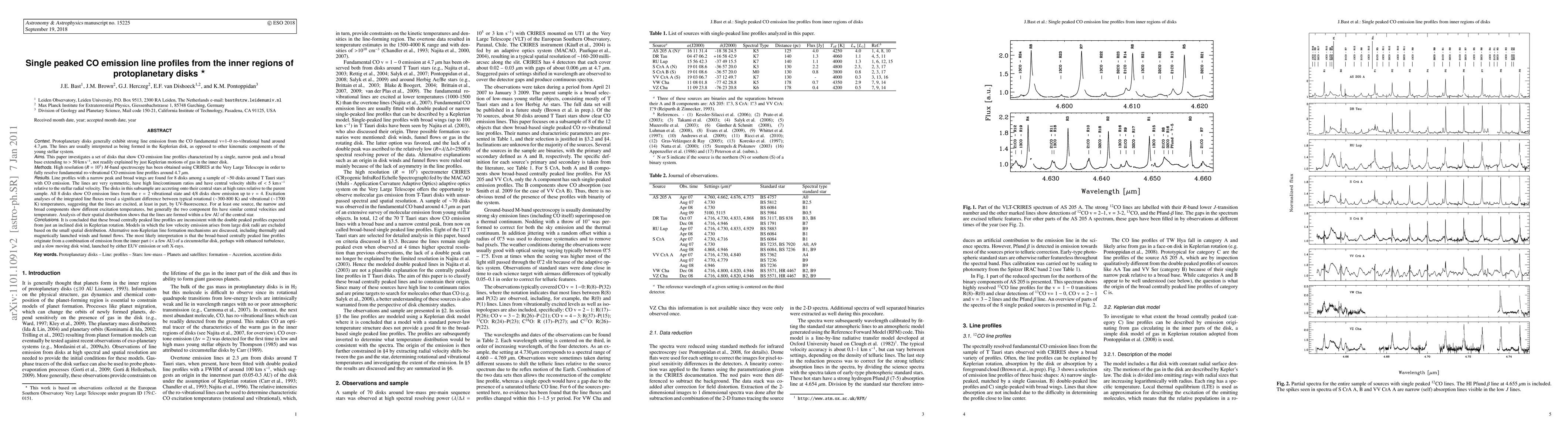 This study uses CRIRES spectrometer to analyze CO emission line profiles in the inner regions of protoplanetary disks, revealing single peaked profiles inconsistent with typical Keplerian motion. The findings suggest these profiles likely arise from a combination of inner disk emission and a slow-moving disk wind, possibly driven by EUV or soft X-rays.