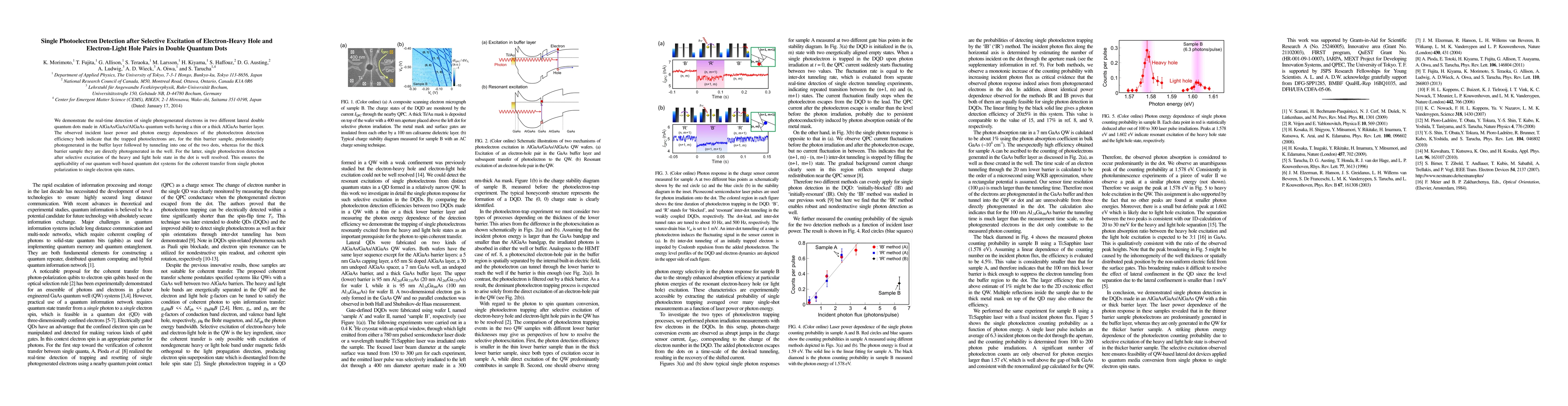 This paper demonstrates real-time detection of single photoelectrons in AlGaAs/GaAs/AlGaAs quantum wells with varying barrier thicknesses. The study reveals distinct photoelectron generation mechanisms in thin versus thick barrier samples, enabling coherent transfer from single photon polarization to single electron spin states.