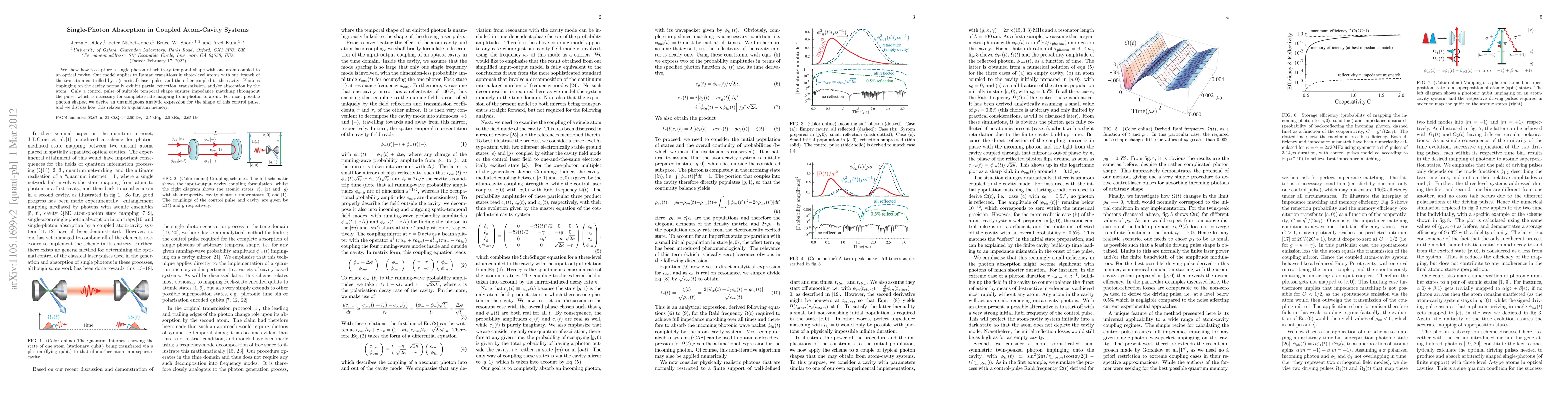 This paper demonstrates a method for capturing a single photon using an atom coupled to an optical cavity, focusing on Raman transitions. It derives an analytic expression for a control pulse that ensures complete state mapping, highlighting the potential for developing quantum memory systems.